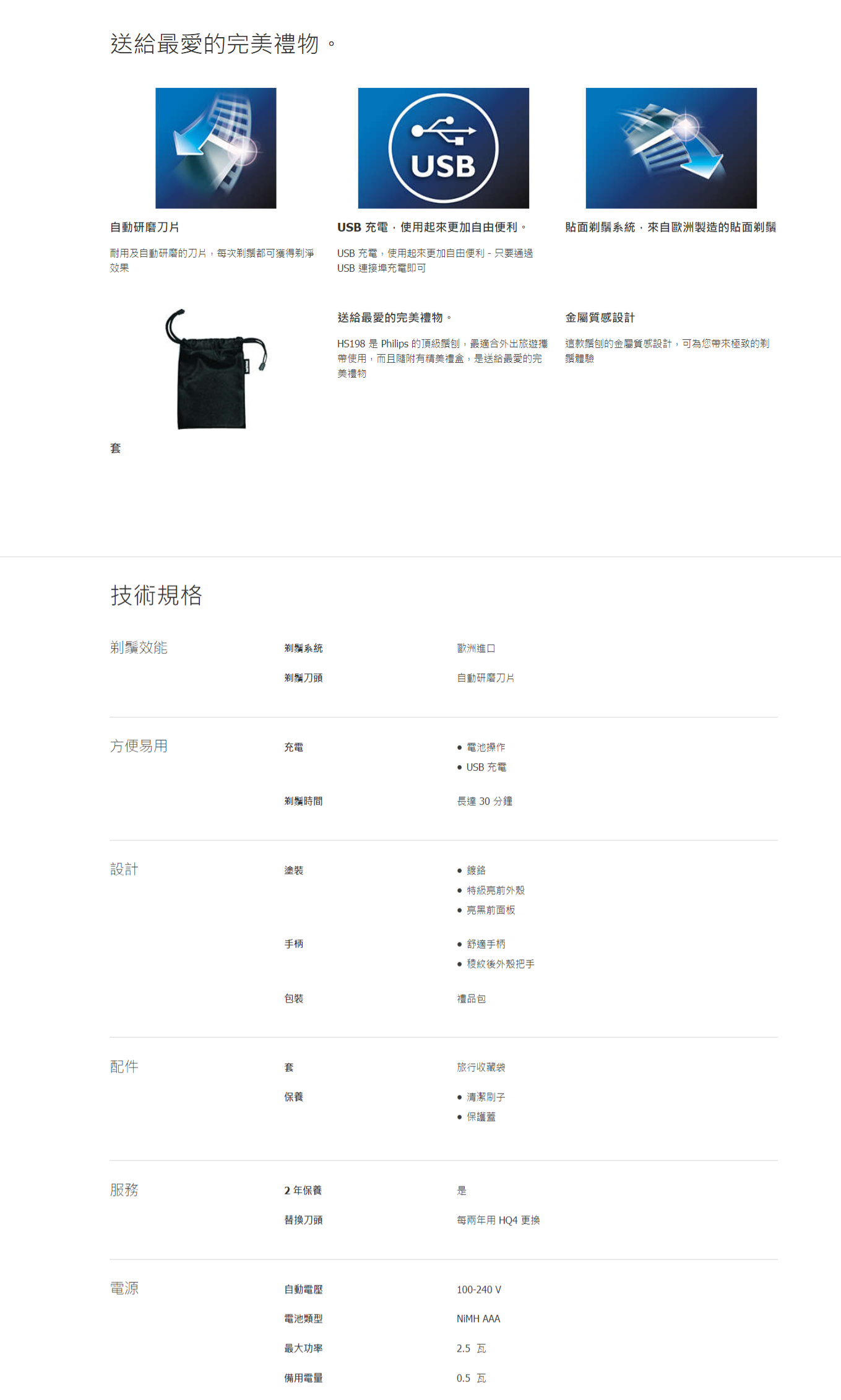 Philips - USB充電便攜式電鬚刨 HS199/16