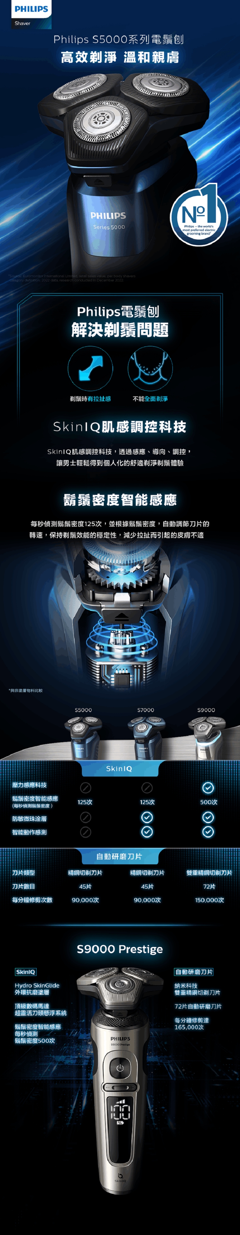 - 獨有SkinIQ智能感控科技,透過感應、調控,讓男士輕鬆實現高效剃淨、溫和親膚的剃鬚體驗。