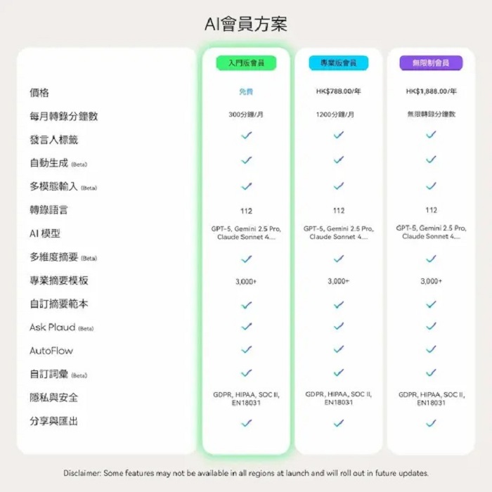 Plaud Intelligence 接入最先進的AI模型,包括 GPT-5、Claude Sonnet 4 與 Gemini 2.5 Pro。