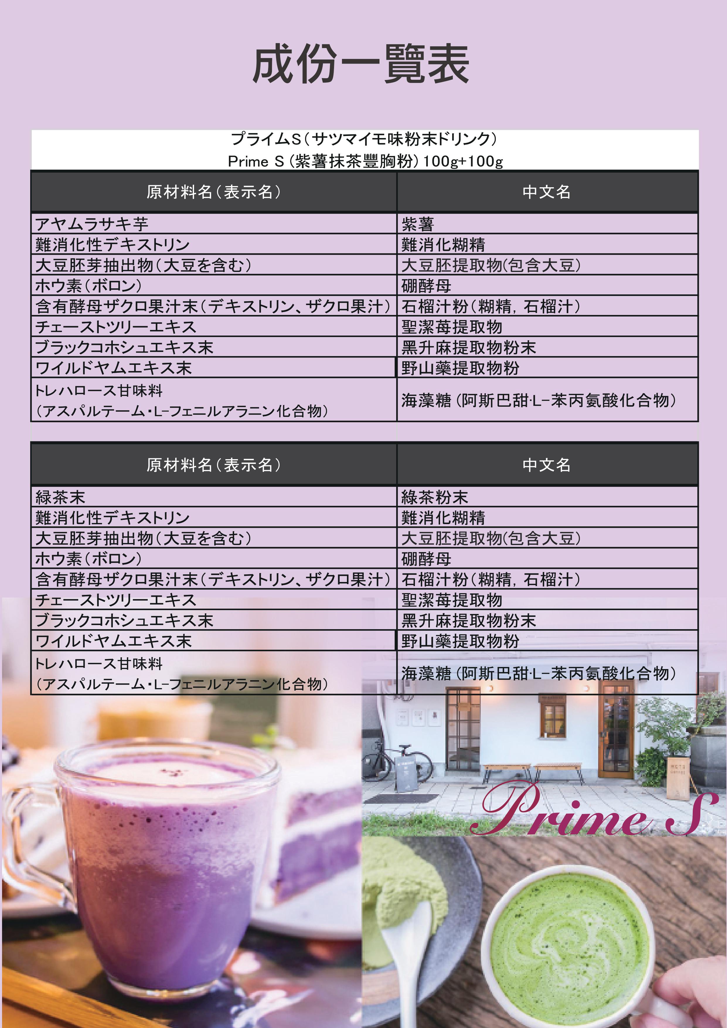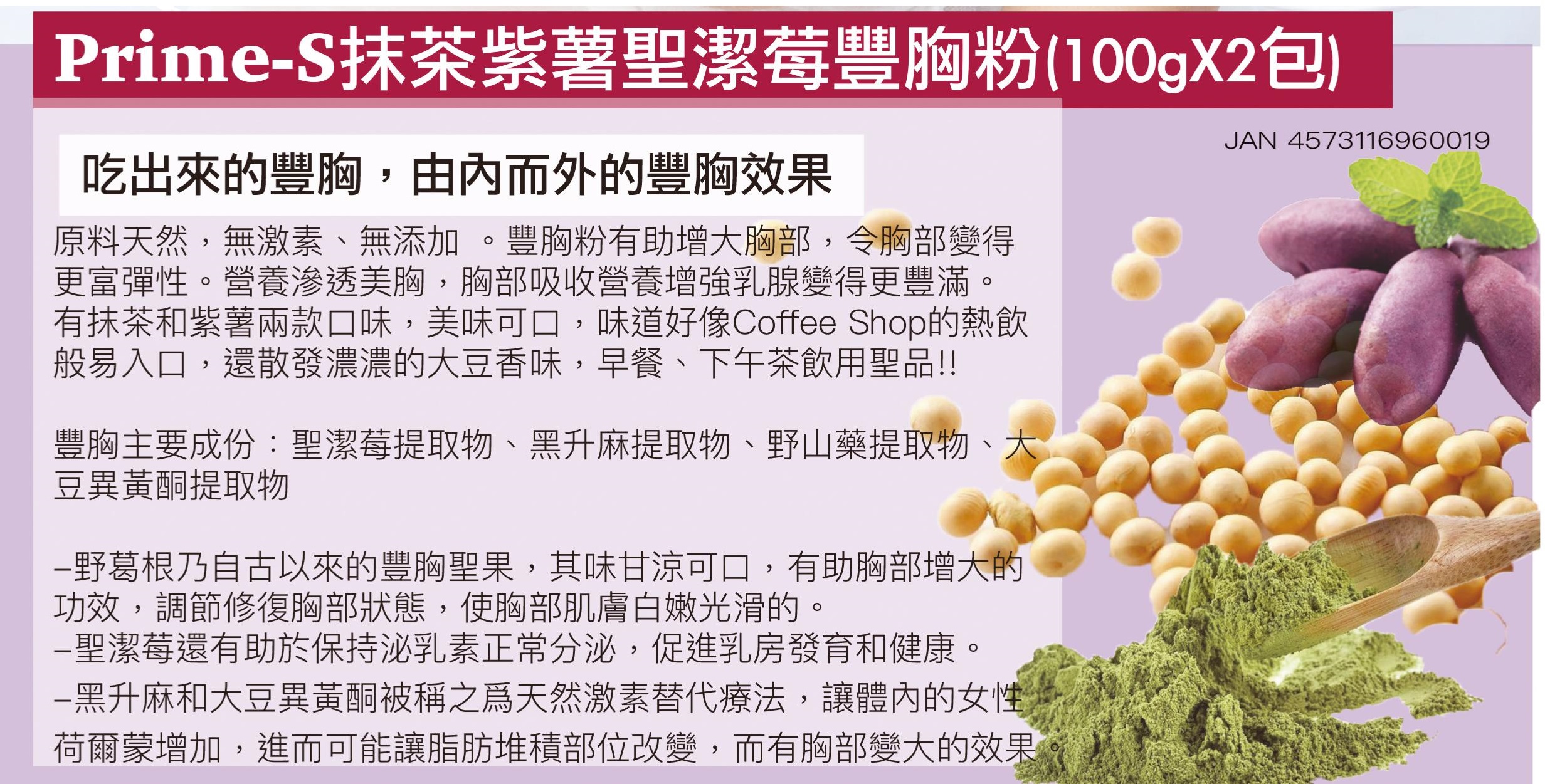 Prime S - 日本大豆聖潔莓 黑升麻 抹茶&紫薯Latte味 豐胸粉 (100g*2) X 1盒