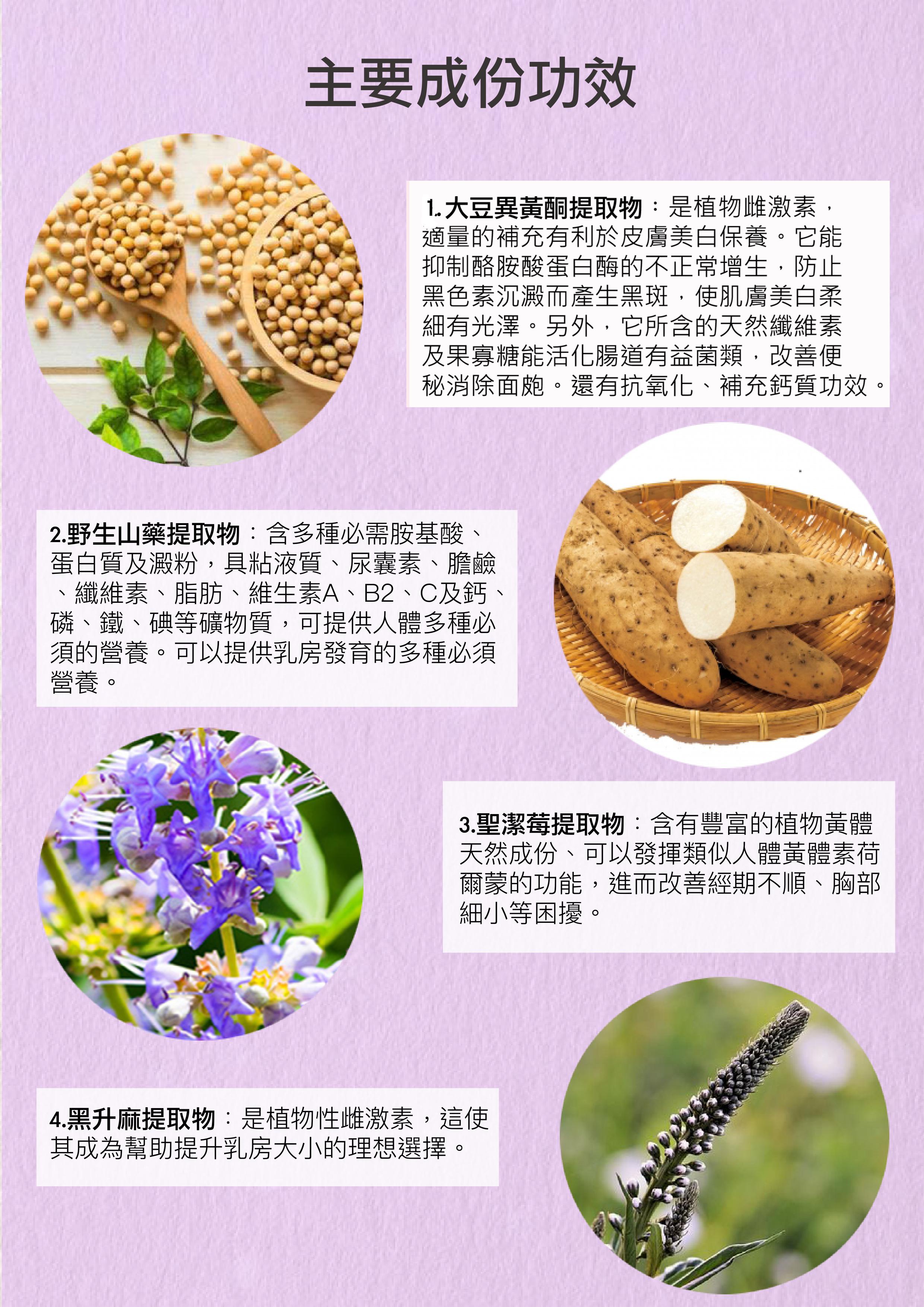 原料天然,無激素、無添加 。野葛根乃自古以來的豐胸聖果,其味甘涼可口,常作煲湯或藥用。野葛根有助胸部增大的功效,調節修復胸部狀態,使胸部肌膚白嫩光滑的效果好多客人都問本店,日本妹甘好身材其實係食咩架?!日本妹除左都會有少少遺傳因素外,其實秘訣在於佢地中學時段個起, 就會開始豐胸計劃,除左平時多飲豆腐、牛奶、魚湯外,仲會飲豐胸粉,所以佢地發育時期吸收特別好營養+護理,就鍛鍊出今日甘好的身材