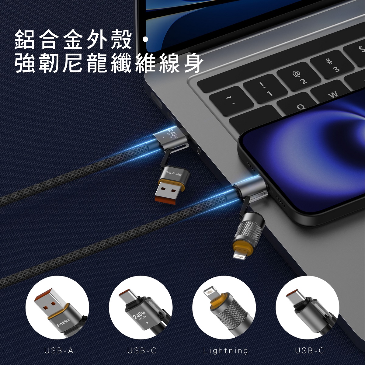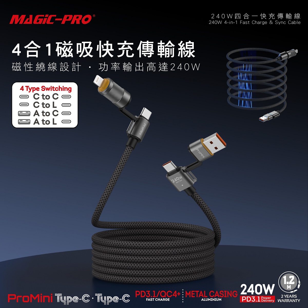 ProMini - 240W 四合一磁吸快充傳輸線 120cm (1.2M)