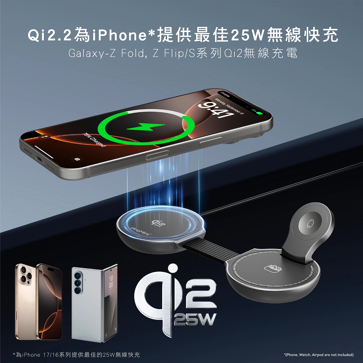 - Qi2.2官方認證-25W無線充電功率,為您的iPhone 17/16系列快速安全充電