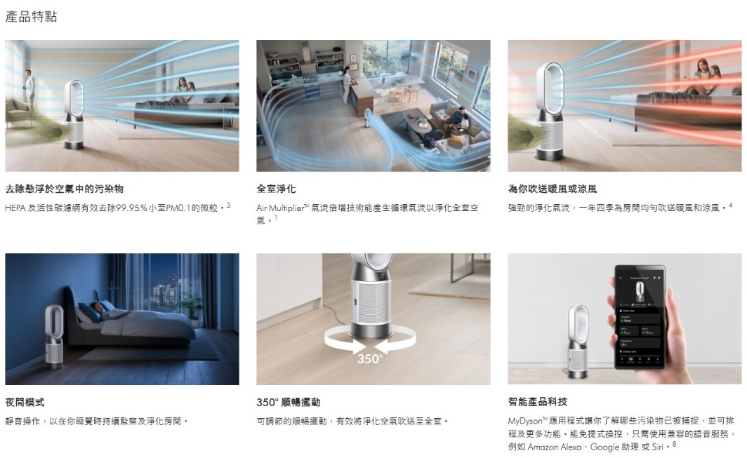 MyDyson™應用程式讓你了解哪些污染物已被捕捉,並可排程及更多功能。能免提式操控,只需使用兼容的語音服務,例如Amazon Alexa、Google助理或Siri。