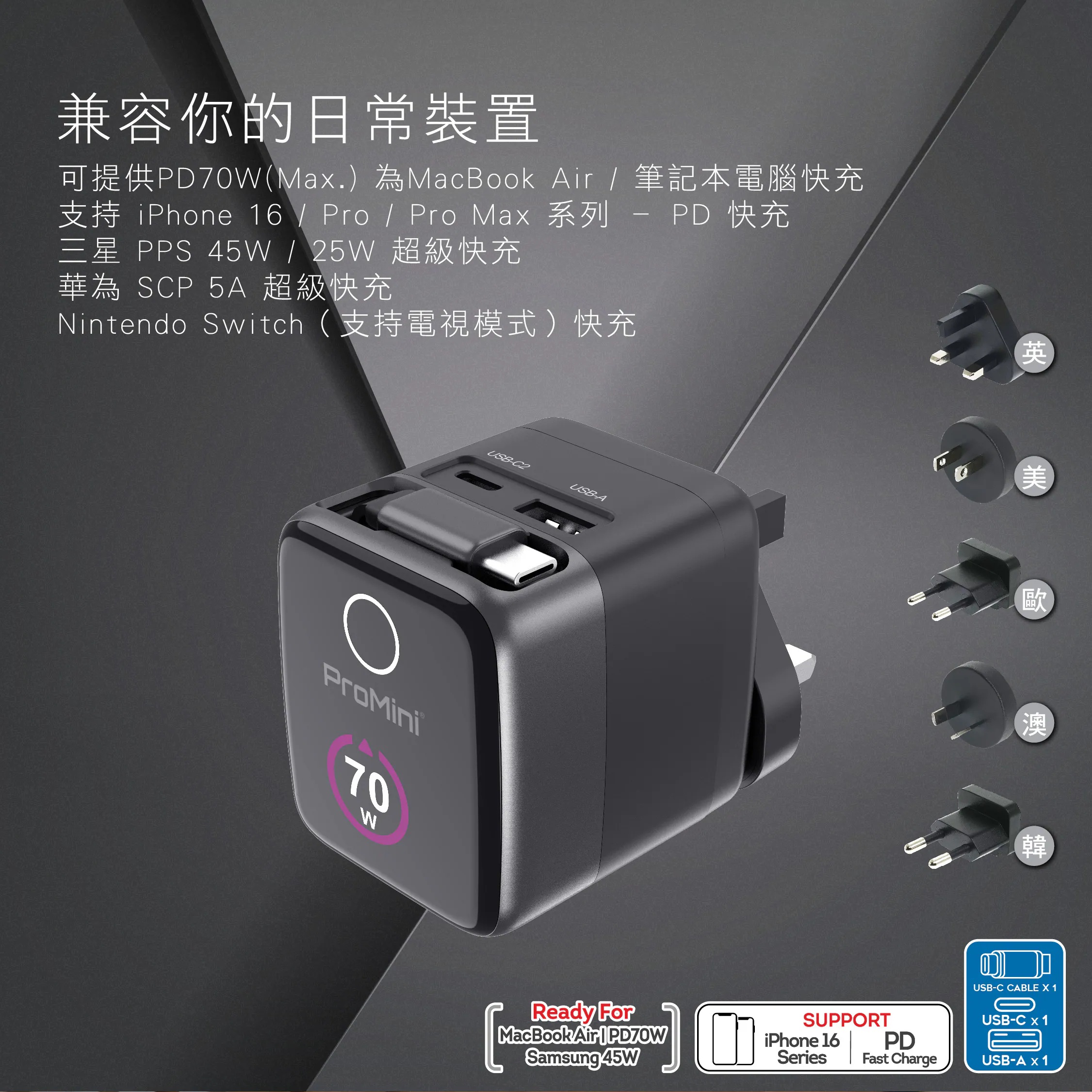 ProMini - GT70 GaN 70W 旅行快速充電器