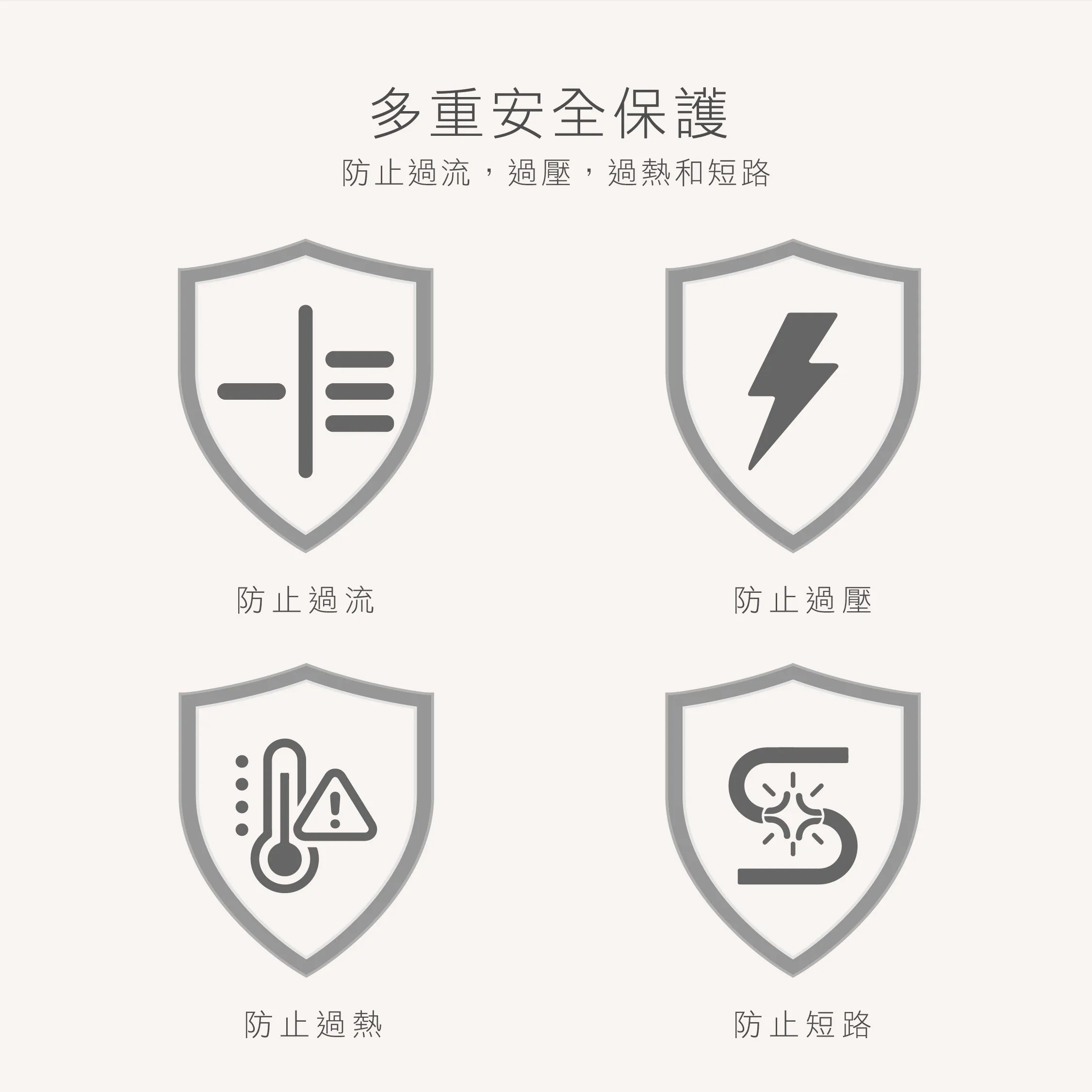 - 多重安全保護,防止過流,過壓,過熱和短路