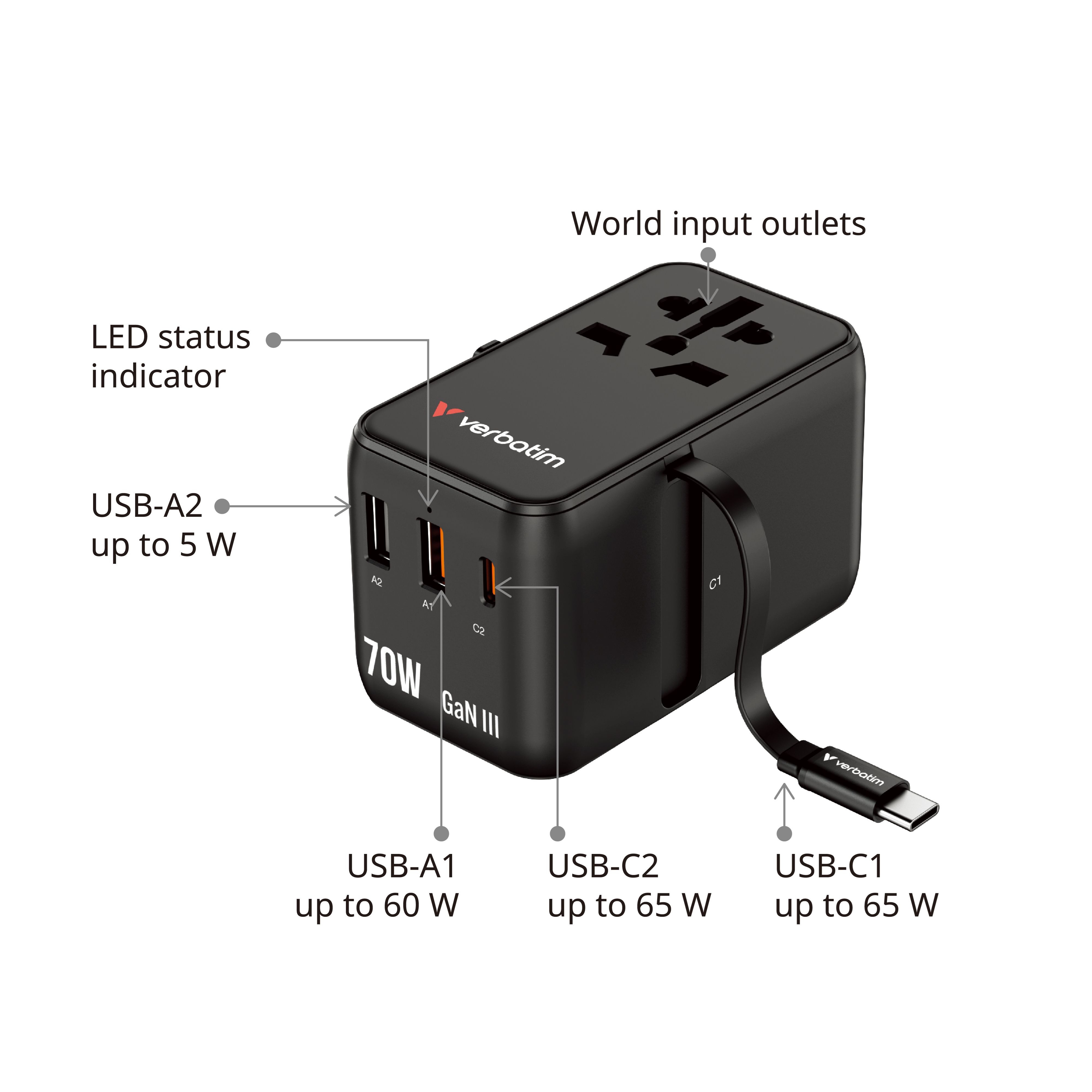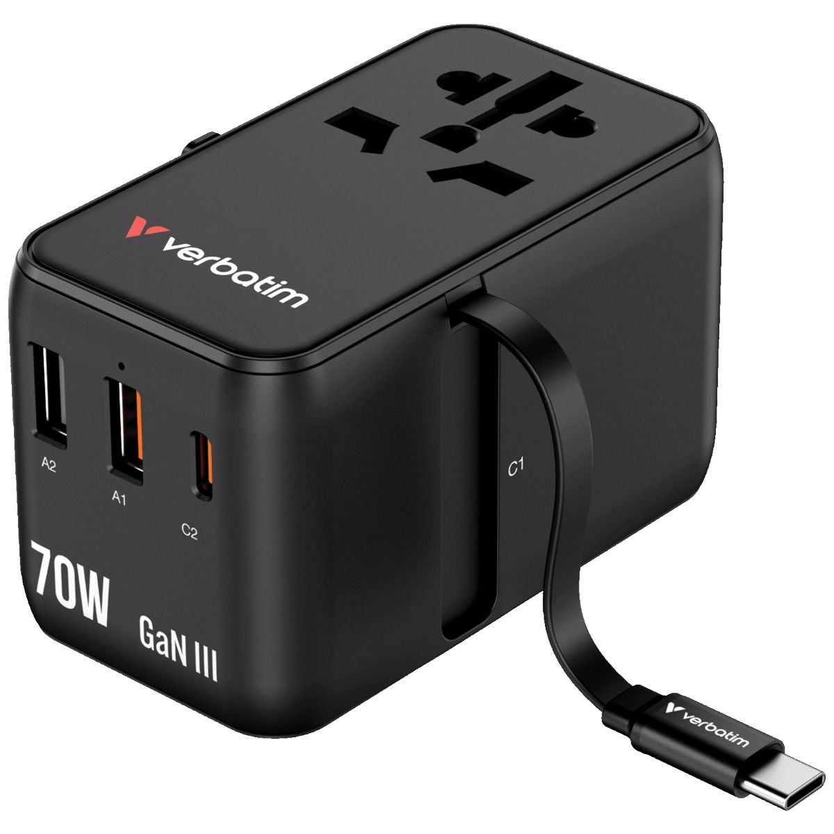 Verbatim - Charge 'n' Travel 70W 通用旅行轉插連可伸縮USB-C充電線