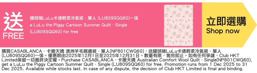 8. 須受Club HKT Limited (https://goo.gl/TbBa71) 及香港卡撒天嬌香港有限公司條款及細則約束。