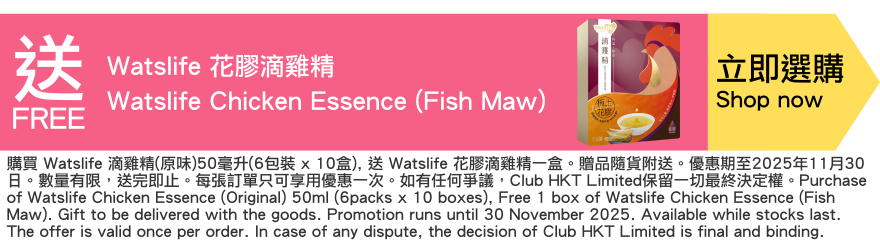 3. 是項獎賞不可退款或退換,所需之Club積分將於閣下的The Club賬戶自動扣除。