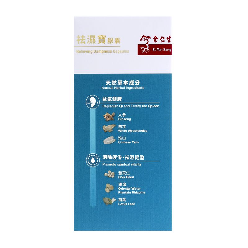 消除疲倦﹑腰赤,利水消腫。此產品為天然草本提煉,透過加強補氣﹑健脾胃的中醫概念,推動脾胃運作,加速身體循環,從而排走體內濕氣,告別頭重重,回復精神活力,同時改善濕腫,令體態輕盈。此配方特性平和,溫而不燥,適合大眾化體質。對於長期處於冷氣地方﹑吃生冷食物或喝凍飲﹑生活過於勞累及缺乏活動而未能排出濕氣人士,尤其適合。