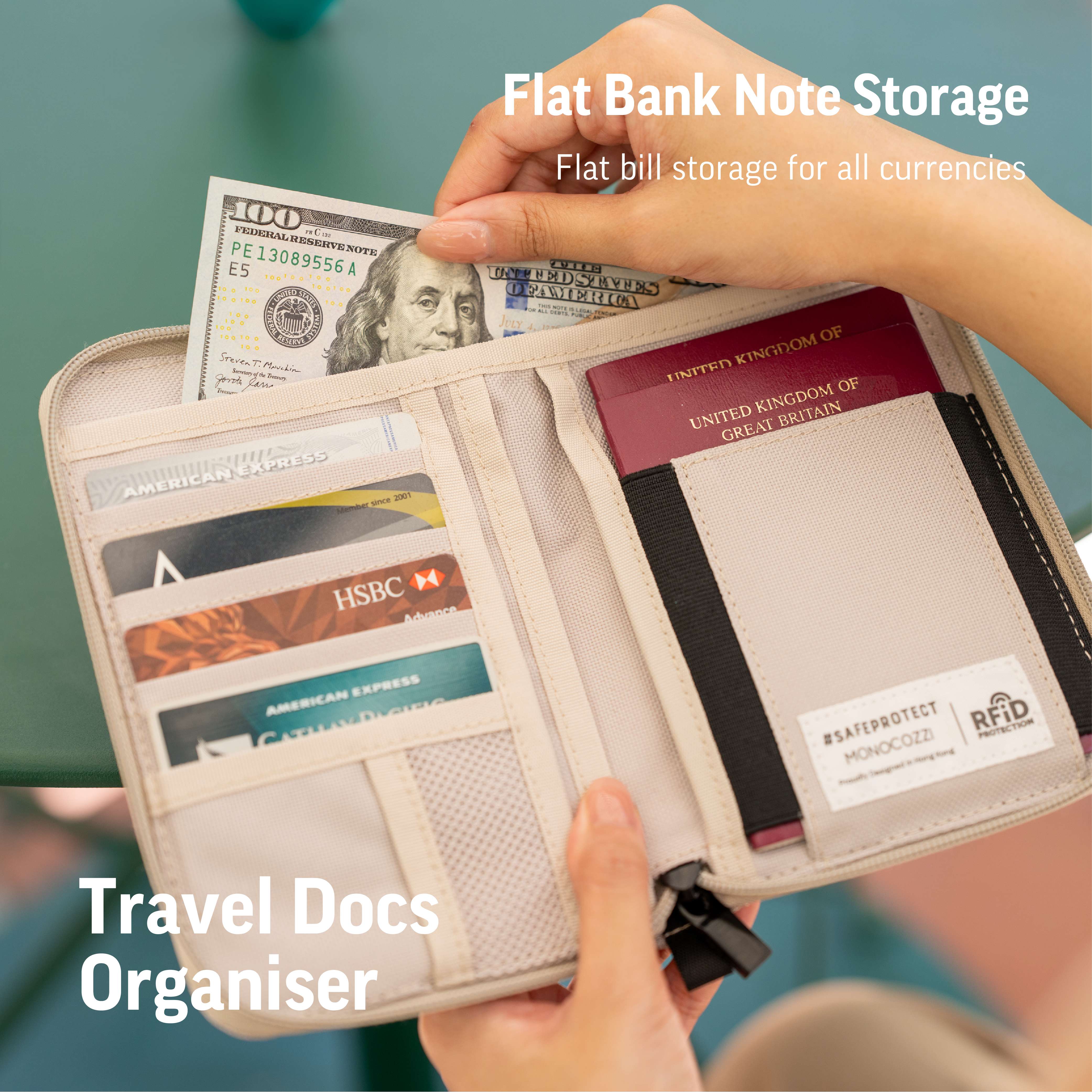 這款文件包設計輕便,輕鬆放入您的手提行李包或背包,非常適合日間旅行或長途出行,且不會增加多餘的負擔。 - RFID 保護
