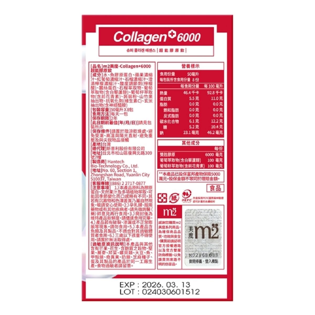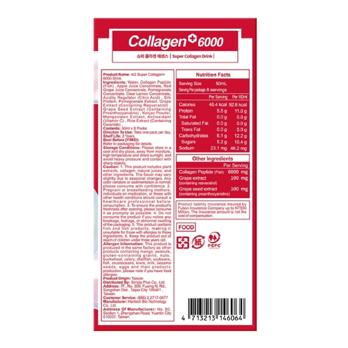 水、魚膠原蛋白、蘋果濃縮汁、紅葡萄濃縮汁、石榴濃縮汁、澄清檸檬濃縮汁、酸度調節劑(檸檬酸)、蠶絲蛋白、石榴萃取物、葡萄萃取物(含白藜蘆醇)、葡萄籽萃取物(含前花青素)、蒟蒻粉、山竹果抽出物、抗氧化劑(維生素C)、玄米抽出物(含神經醯胺)