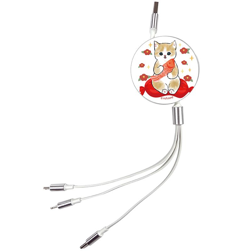 Anichi - 3合1伸縮快充數據線 - 錦鯉貓(白色) CR-MOF-099-W