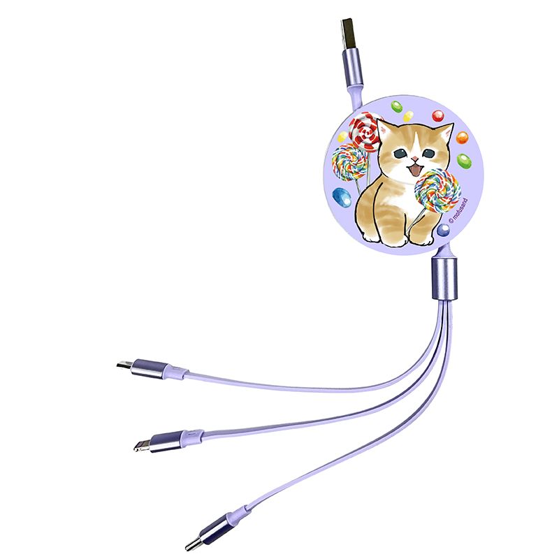 Anichi - 3合1伸縮快充數據線 - 波板糖貓