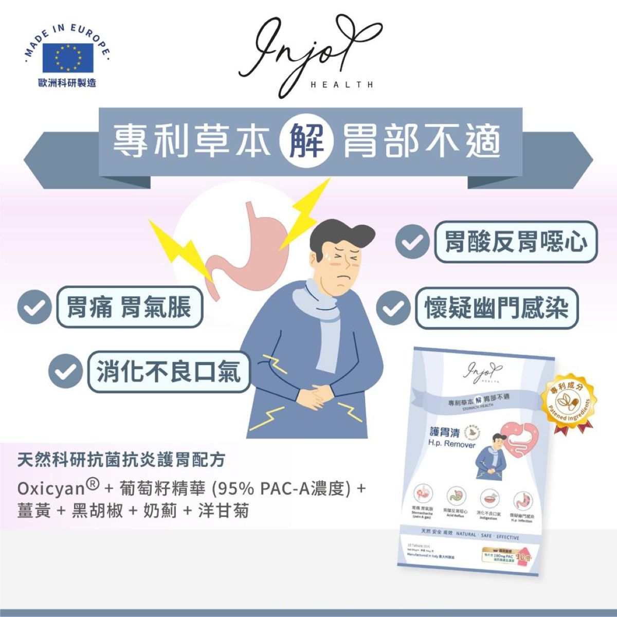 胃部不適是都市人的通病。快餐文化,加上飲食不定時,生活及工作壓力大,消化系統失調,令胃部出現各種不適症狀。幽門螺旋菌是一種“傳染力高”的病原體,可以經帶菌的餐具丶被污染的食物丶手丶唾液等途徑傳播,並能在感染者的胃中生存而難以被察覺。中大醫學報告指出:全球近40億人感染幽門螺旋菌,包括香港在內的亞洲區感染率達55%。它可以經帶菌的餐具、被污染的食物、手、唾液等多種途徑傳播,你的親屬朋友都可能不自覺被感染。愛己愛人,請立刻處理。現時的處理方法,多數會以藥物治療,但長期服用藥物會導致細菌產生抗藥性,副作用大,並非最佳選擇,而照胃鏡/呼氣測試,除了價錢昂貴,藥物的抗藥性未能從根源性解決胃部不適問題。