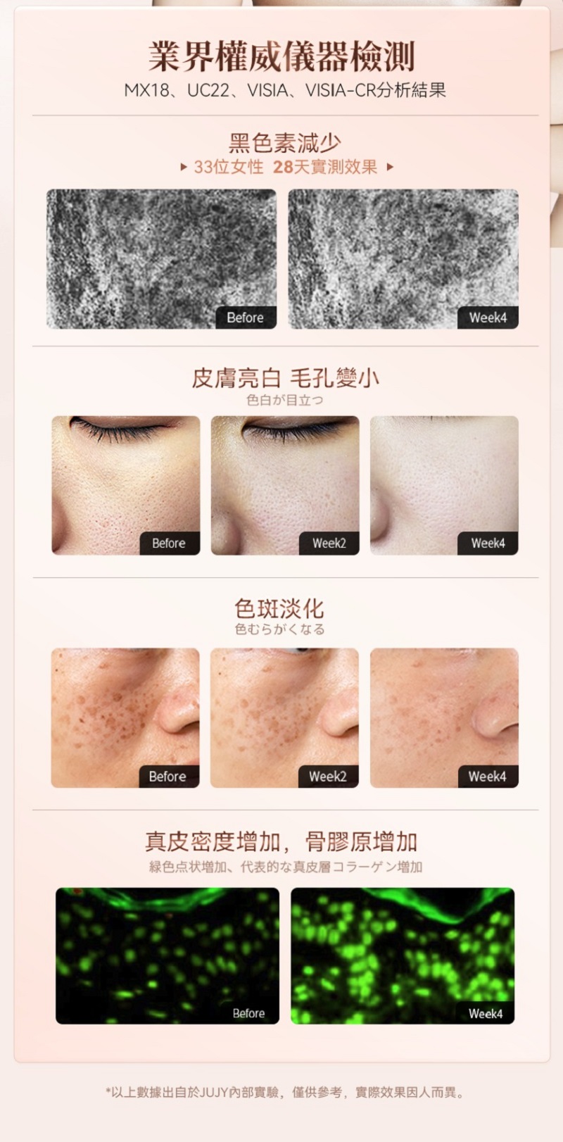 • 院線級雙光子技術,淡斑抑黑,去黃提亮,嫩透美白