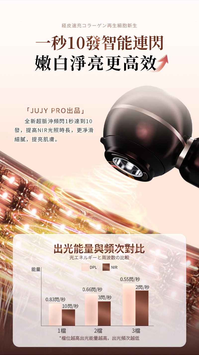 • 一秒10發智能連閃,超高頻率出光,加速褪黑嫩白。
