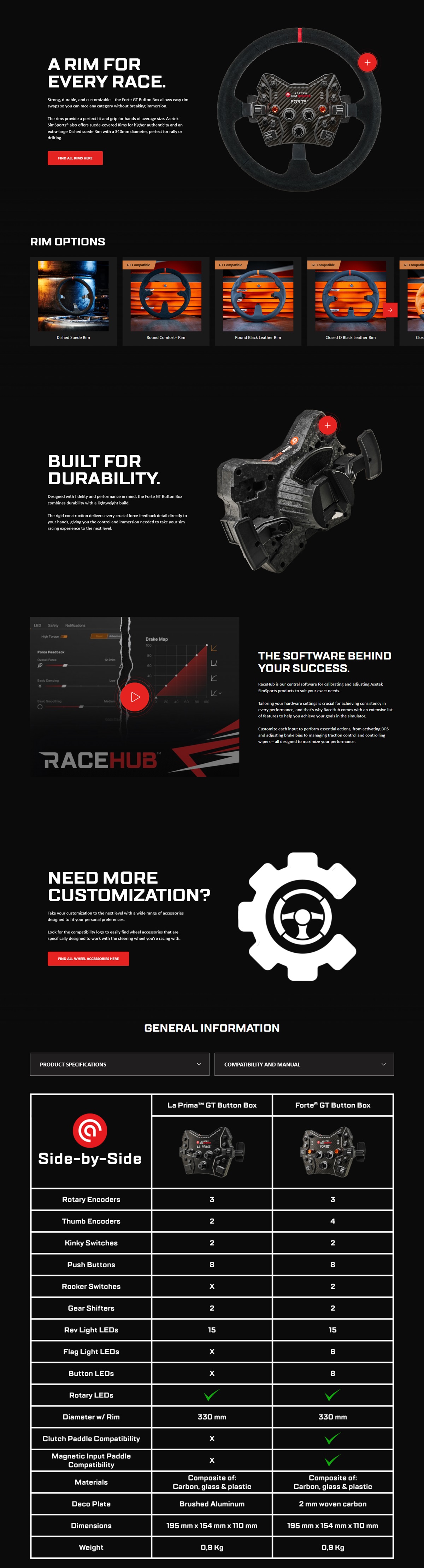 Forte® GT 按鍵盒以耐久與表現為核心理念設計,在保有剛性基礎下,維持輕盈機構,確保不會犧牲回饋精度與駕駛靈敏度。