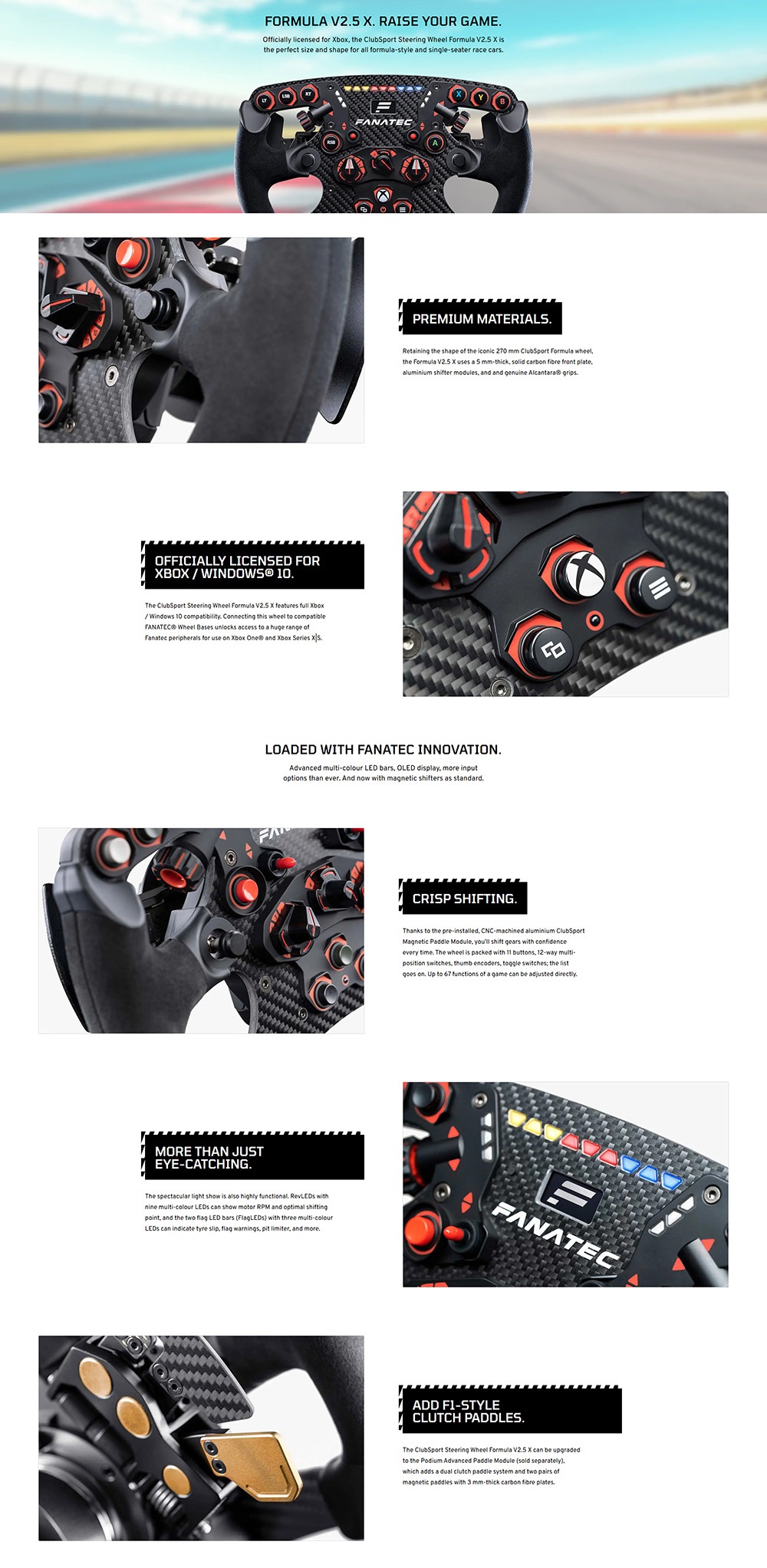 ClubSport Formula V2.5 X 方向盤為 Xbox 官方授權產品,其完美尺寸與造型專為所有方程式風格及單座賽車設計。