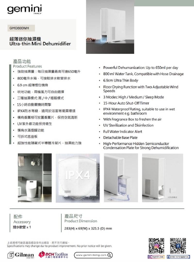 Gemini - GMD800WH 超薄迷你抽濕機