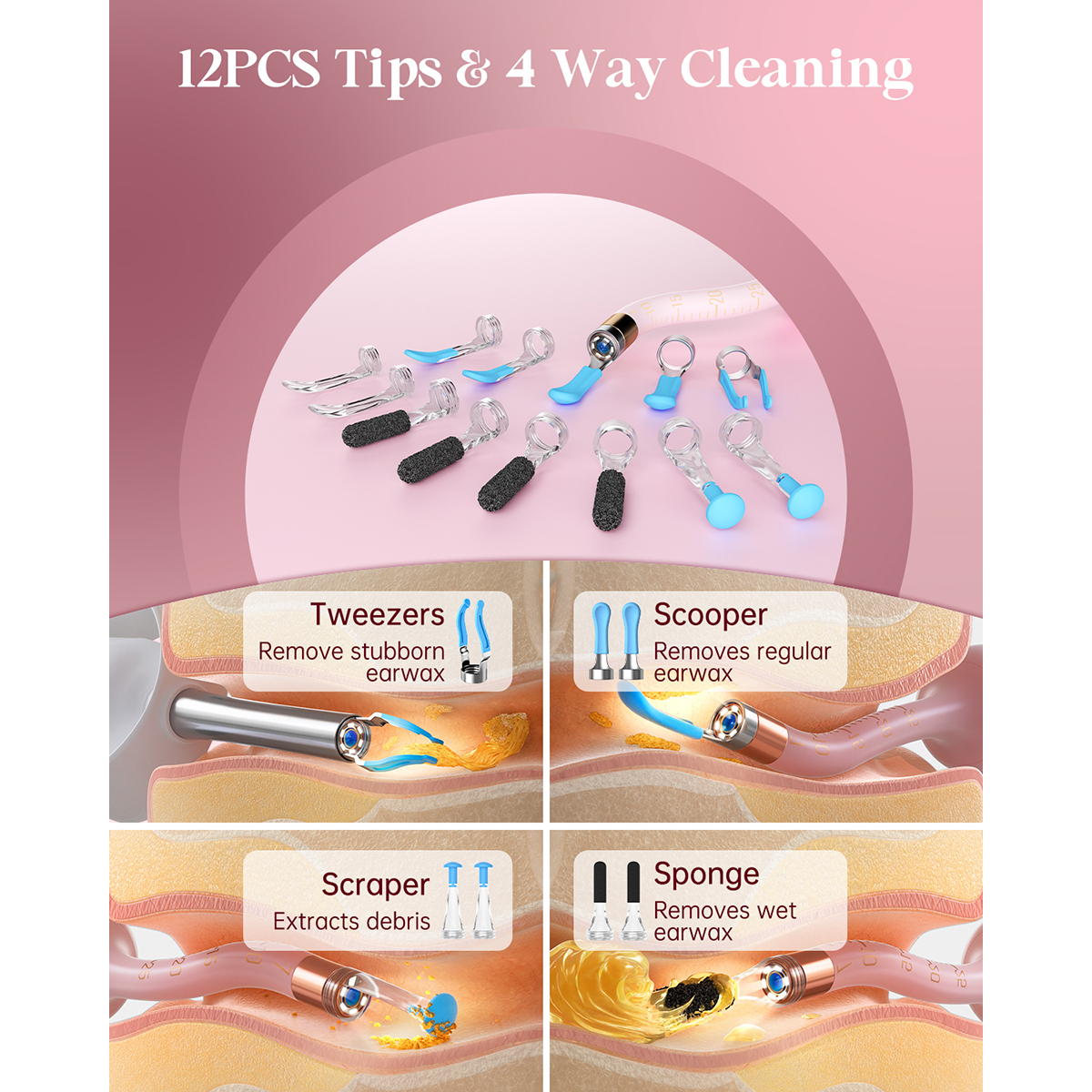Bebird - EarSight Plus I35R 多功能彎曲定型掏耳棒 (粉紅色)