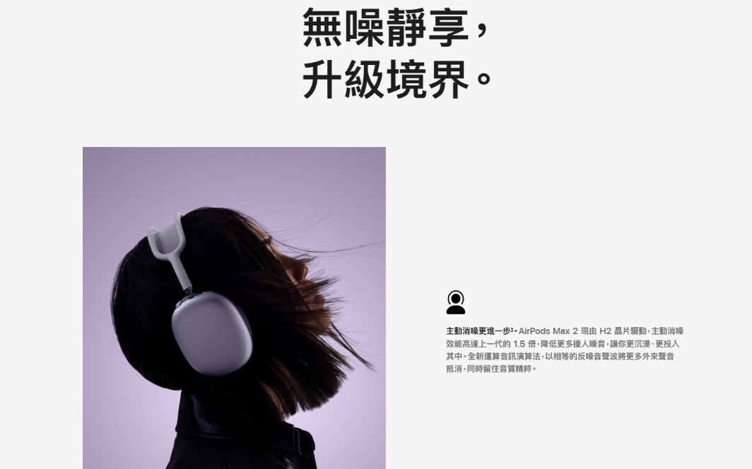 - 終極罩耳式聆聽體驗:AirPods Max 2 由 H2 晶片驅動,高度傳真音訊更進一步,低音雄渾、中音廣闊、高音清脆,聆聽體驗無可比擬。