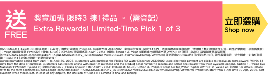 Philips - ADD6902 RO純淨飲水機 - 3色 (送Philips ADD541+ADD547 濾水芯 (價值: $866)) Philips - ADD6902 RO純淨飲水機 - 3色 (送Philips ADD541+ADD547 濾水芯 (價值: $866)) Philips - ADD6902 RO純淨飲水機 - 3色 (送Philips ADD541+ADD547 濾水芯 (價值: $866)) Philips - ADD6902 RO純淨飲水機 - 3色 (送Philips ADD541+ADD547 濾水芯 (價值: $866))