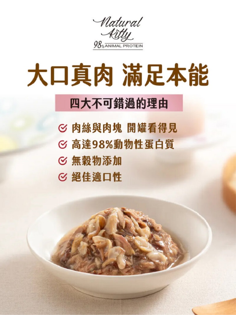 [電子禮券] Natural Kitty 自然小貓 - 98%動物性蛋白質主食罐 天然嫩雞口味 70g CR-PETLINE-TC018