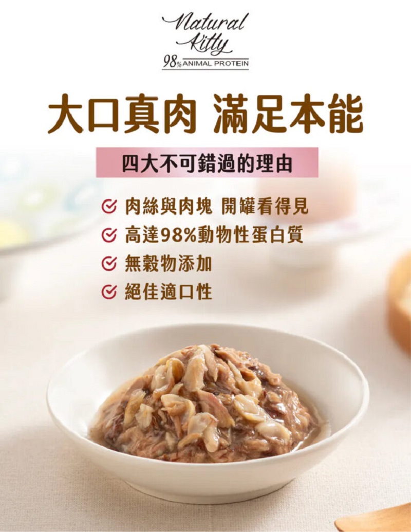 [電子禮券] Natural Kitty 自然小貓 - 98%動物性蛋白質主食罐 吞拿魚佐雞肉口味 70g CR-PETLINE-TC017 [電子禮券] Natural Kitty 自然小貓 - 98%動物性蛋白質主食罐 吞拿魚佐雞肉口味 70g [電子禮券] Natural Kitty 自然小貓 - 98%動物性蛋白質主食罐 吞拿魚佐雞肉口味 70g