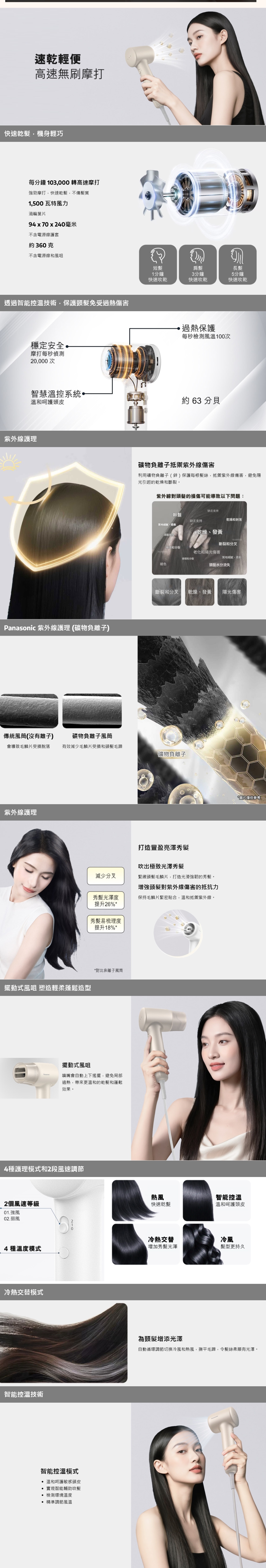 - 每分鐘103,000 轉高速摩打,快速乾髮,不傷髮質
