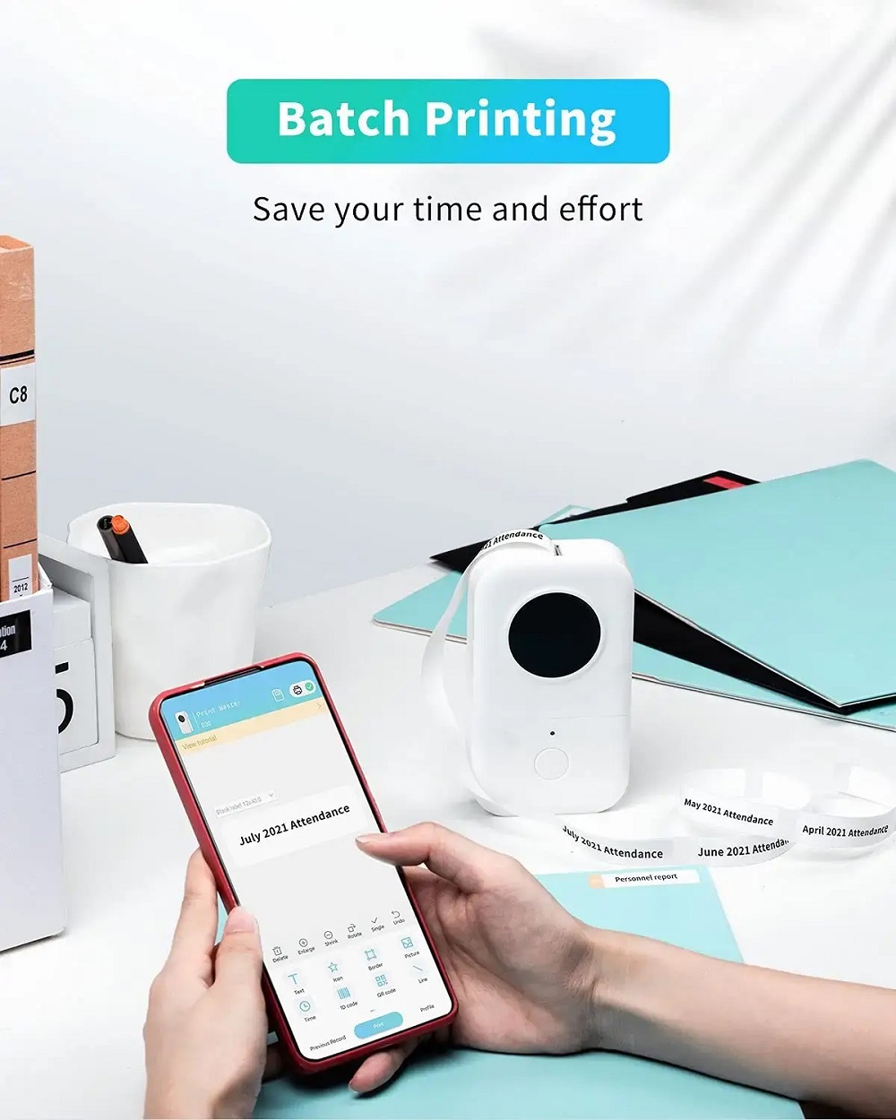 - 無墨列印,輕鬆便捷:熱敏列印無需墨水匣,即可列印清晰的標籤。環保、清潔、操作簡便。