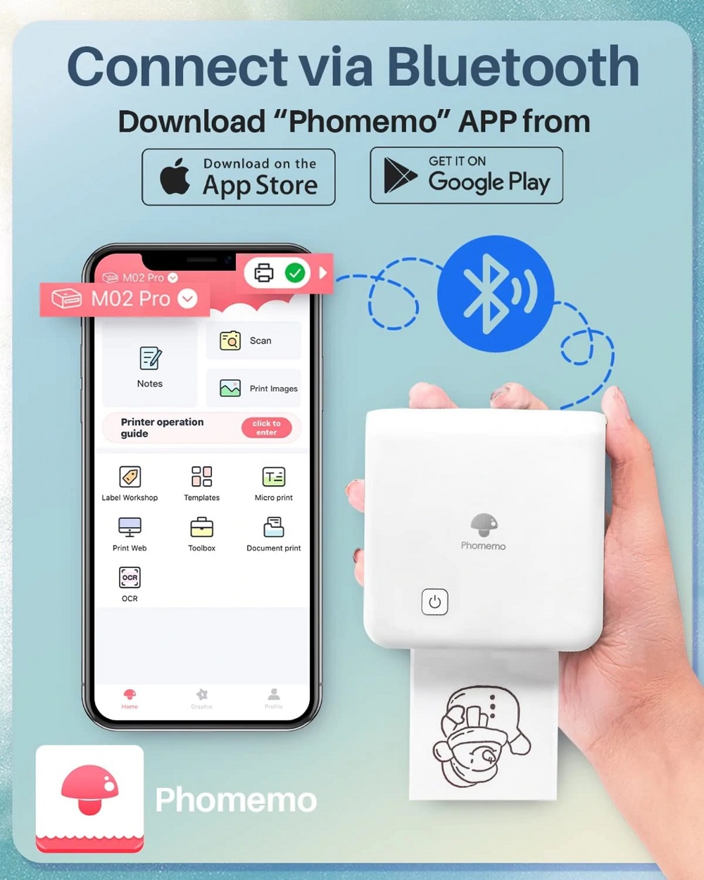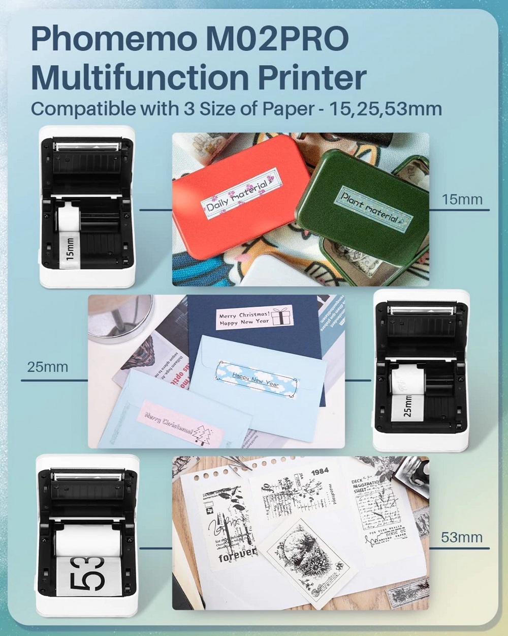 Phomemo - M02 Pro 藍牙無墨迷你打印機 [多款顏色] [送標籤紙: Q22-RMSMLL 3卷]