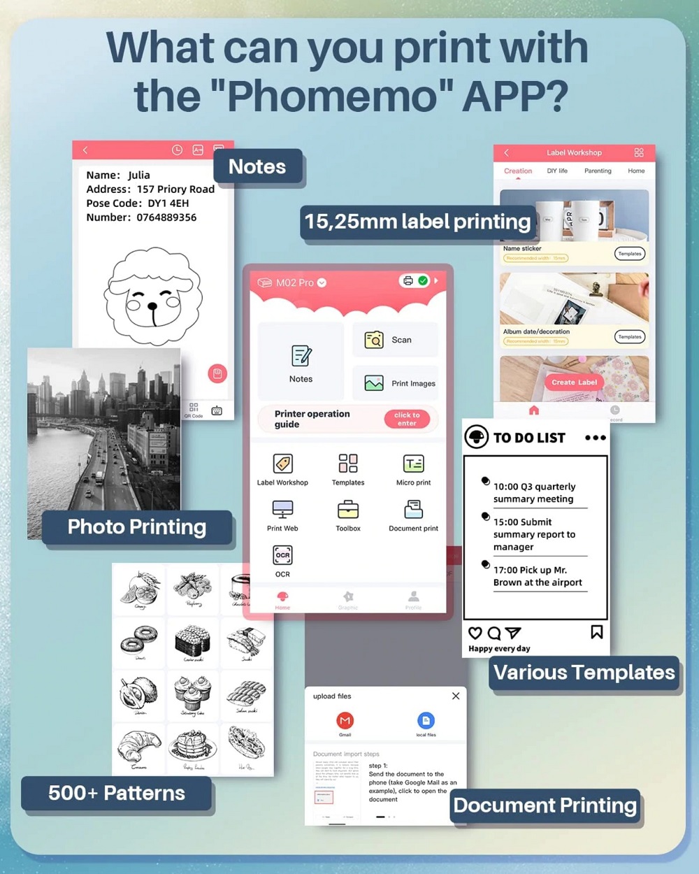 - 智能應用程式:通過PHOMEMO智能應用程式,獲取豐富的設計素材。