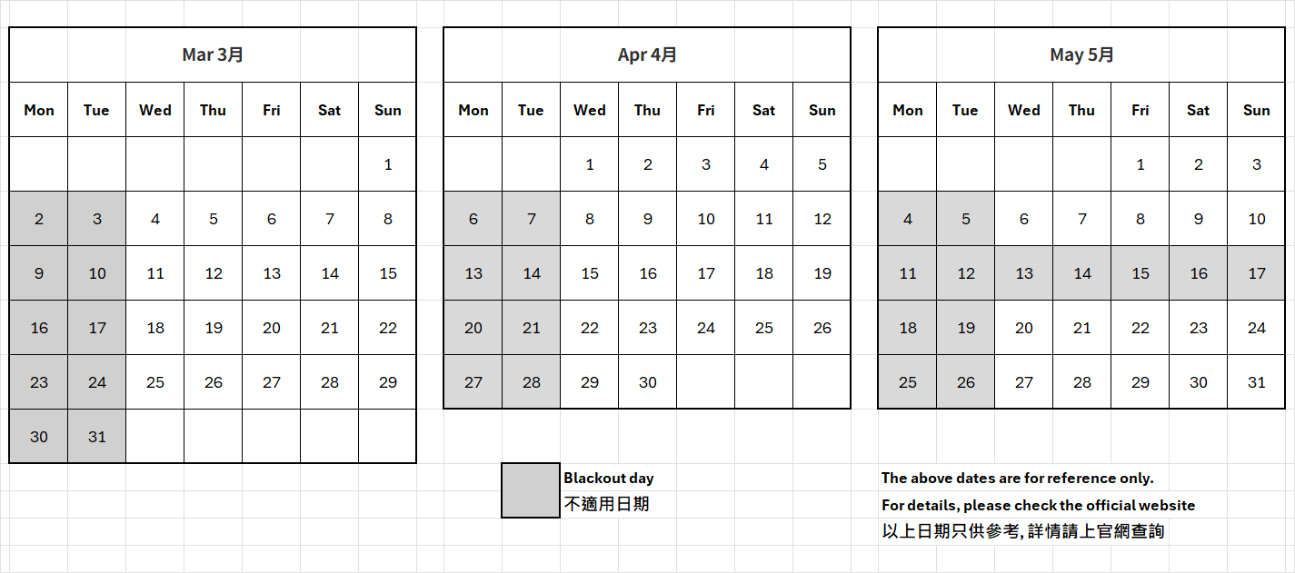- 如有任何疑問,請於辦公時間內致電183 3100向Club Travel 查詢。(9:00 – 18:00)