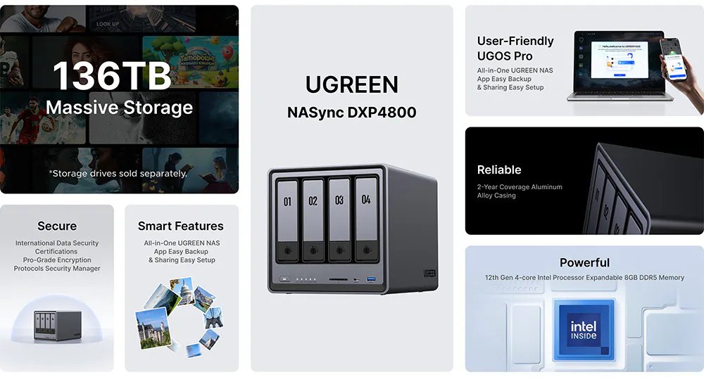 UGREEN - NASync DXP4800 4-Bay 網絡儲存伺服器 (HD-DXP4800)