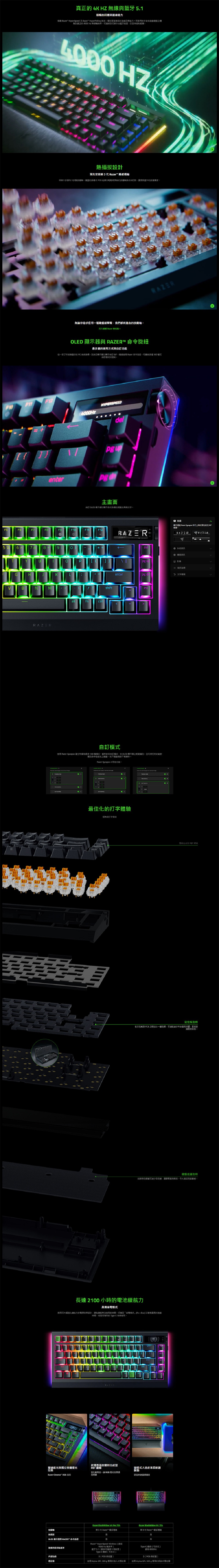 - 連線方式︰透過 Razer™ HyperSpeed Wireless (2.4 GHz)、藍牙 5.1 或 Type-C 連接