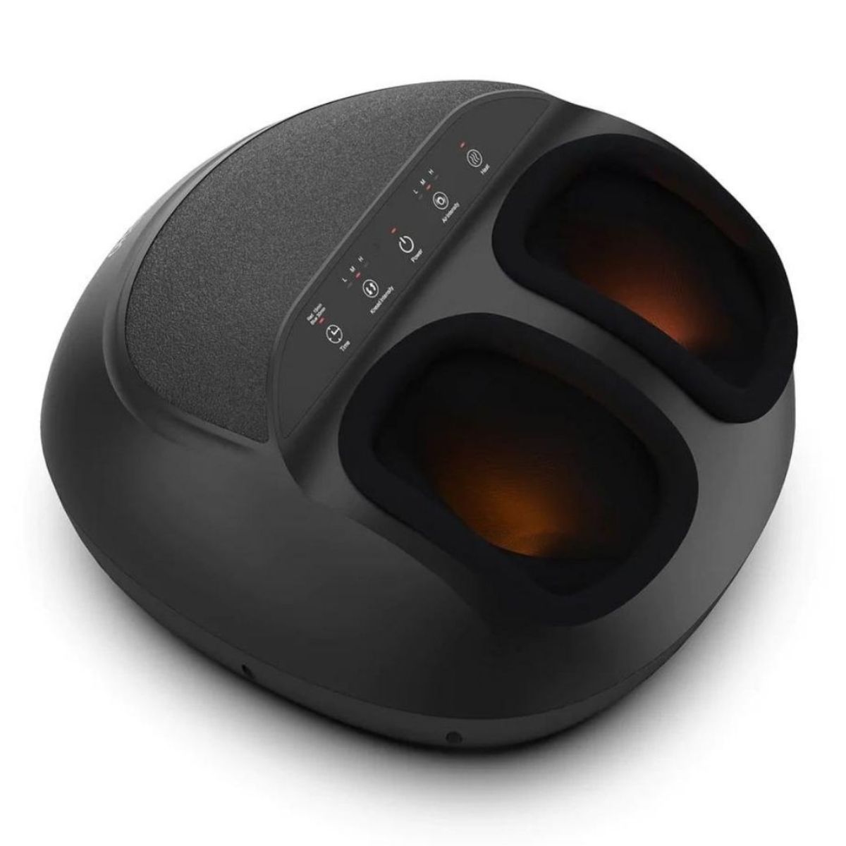 依照人體工學而設計的足部按摩器,提供全方位舒適按摩。提供3種揉捏按壓力度及3段氣壓按摩力度,為不同腳型的用家提供最舒適的按摩。按摩器配備旋轉球和滾動棒,有效疏通腳底經絡穴道,舒緩走路及運動後雙腳的壓力酸痛。配備加熱功能,解決腿腳容易冰冷、氣血循環不佳的情況,提供專業深層足部按摩。它可以舒緩足底筋膜炎引起的痛症,亦有助舒緩神經痺痛。