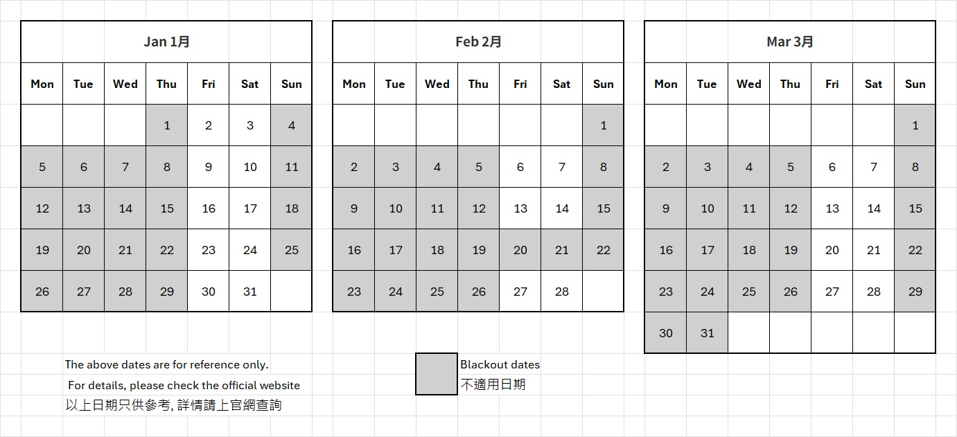 - 不適用於:週日至週四;不適用日期:2026年2月20,21日