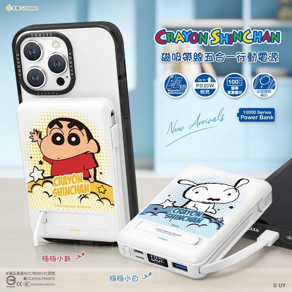[3C CCC 認證] GARMMA - 蠟筆小新 磁吸帶線五合一行動電源 10000mAh [多種顏色]