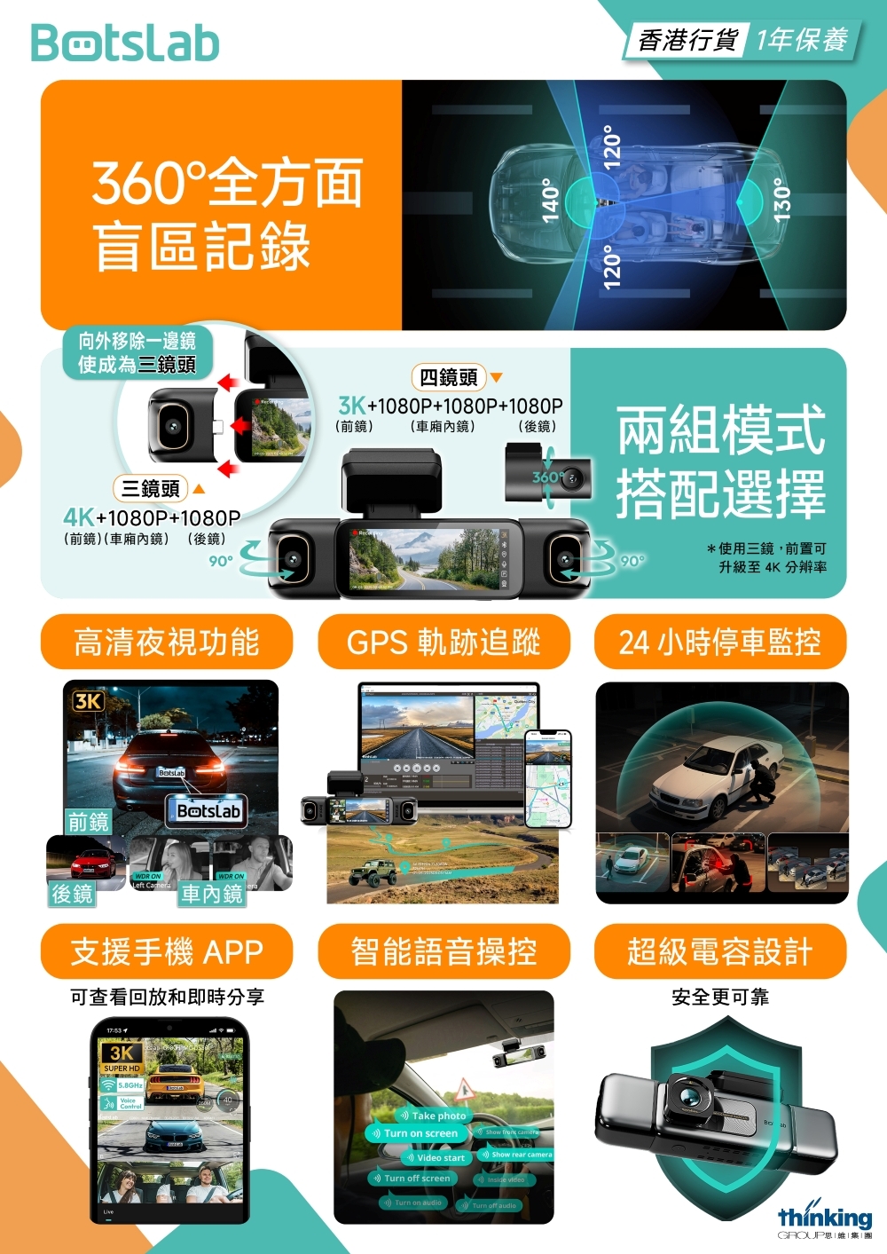 Botslab - G980H Multi channel (4鏡頭) 3K智能行車記錄儀