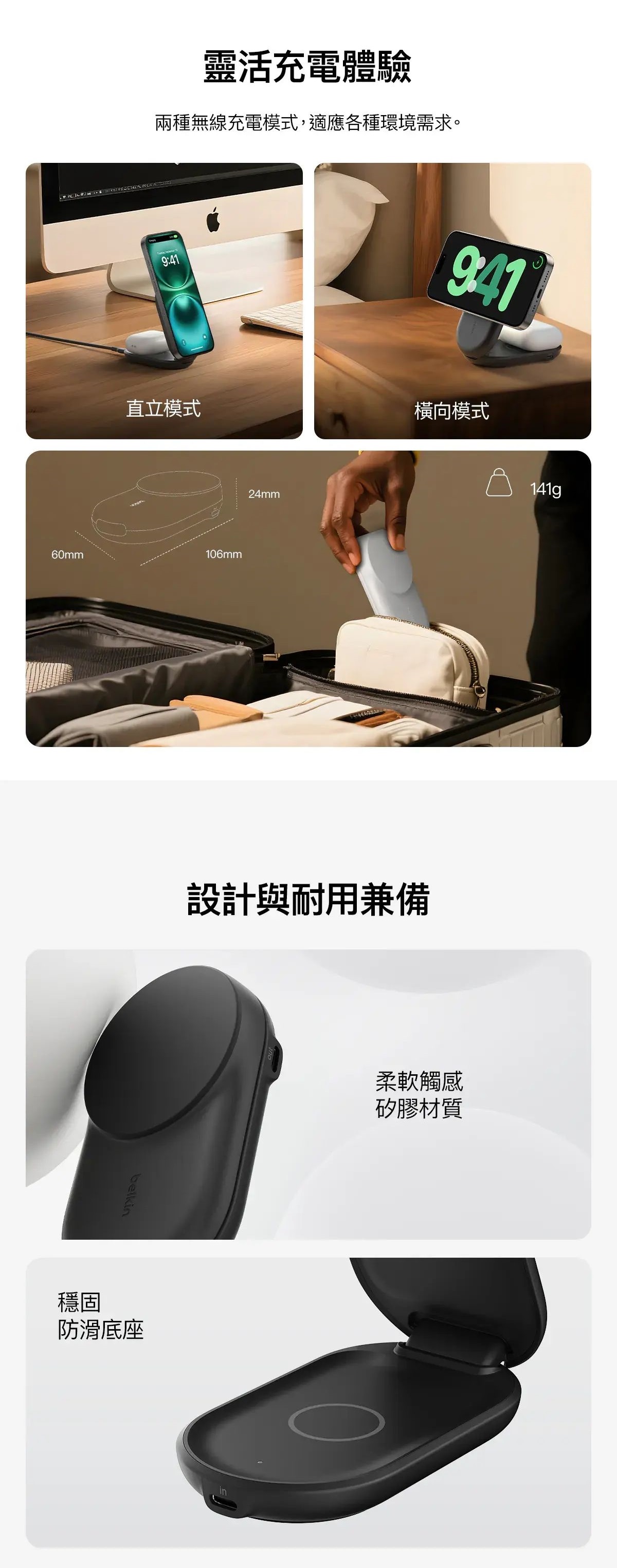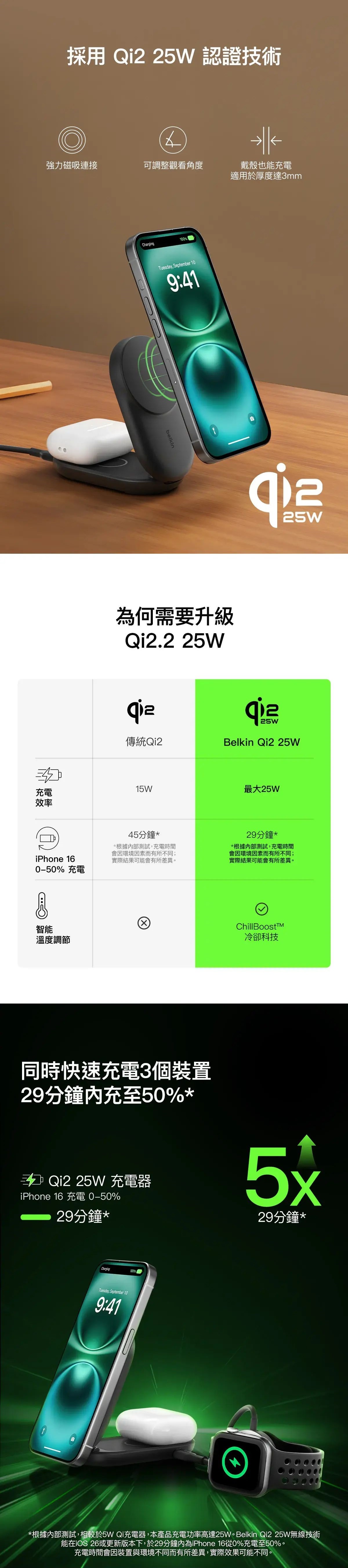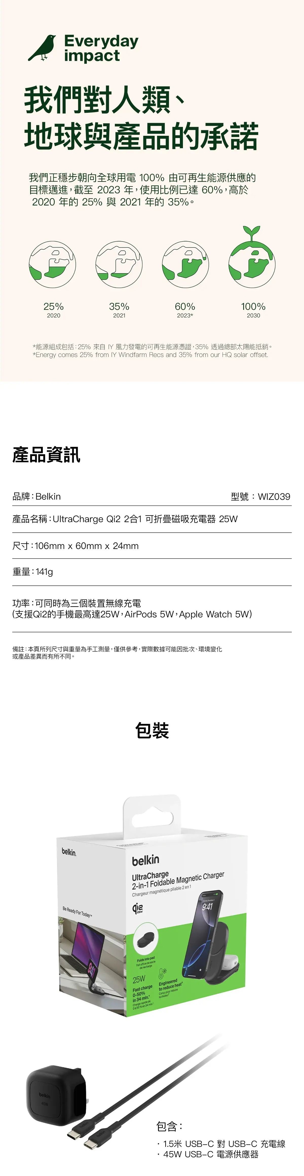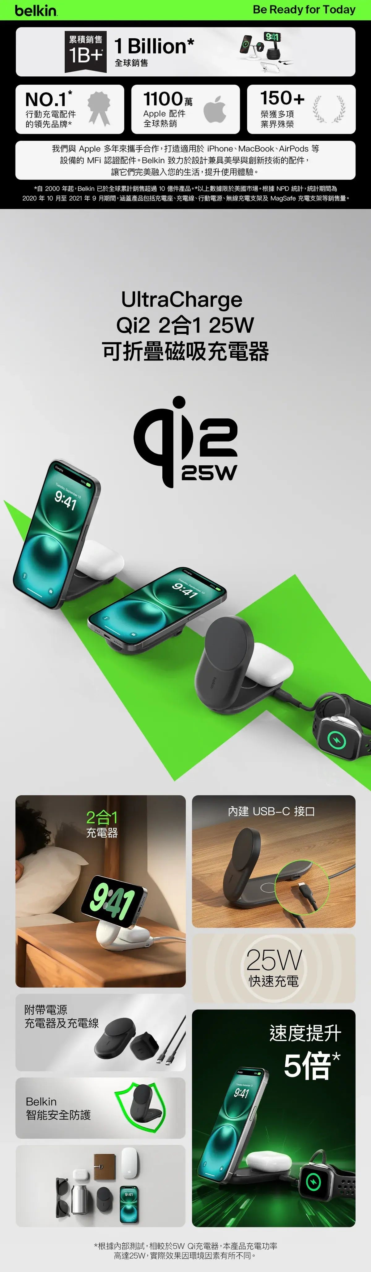 Belkin - Belkin UltraCharge Qi2 2合1 可折疊磁吸充電器 25W [黑色 / 白色] CR-WIZ039MY_ALL
