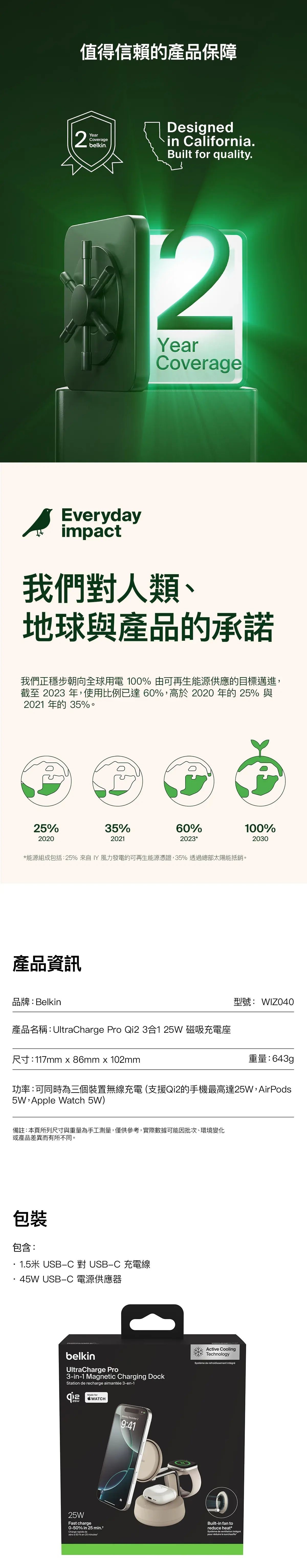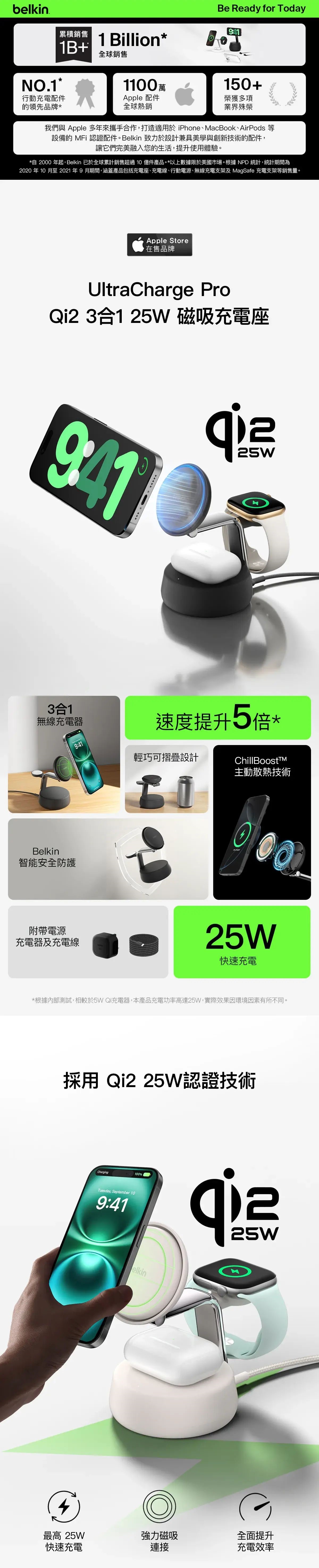 Belkin - Belkin UltraCharge Pro Qi2 3合1 磁吸無線充電座 25W [炭灰色 / 砂色] CR-WIZ040MY_ALL Belkin - Belkin UltraCharge Pro Qi2 3合1 磁吸無線充電座 25W [炭灰色 / 砂色]