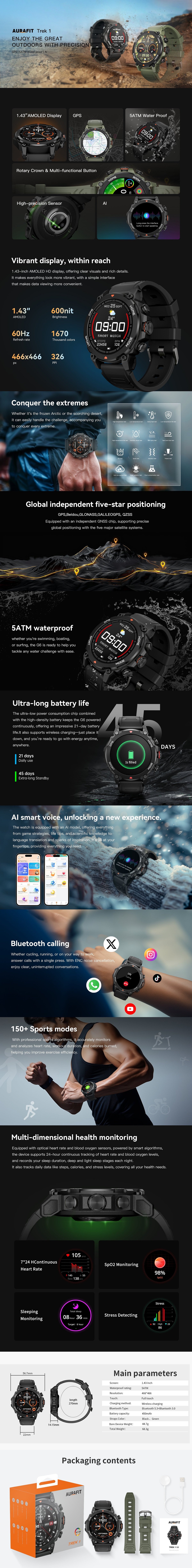Aurafit - Trek 1 G6 智能運動手錶黑色