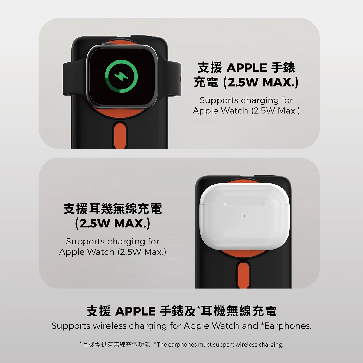 - 22.5W 雙向快充 — 配置獨立USB-C接口 + 內置USB-C充電線,支援高速輸入/輸出