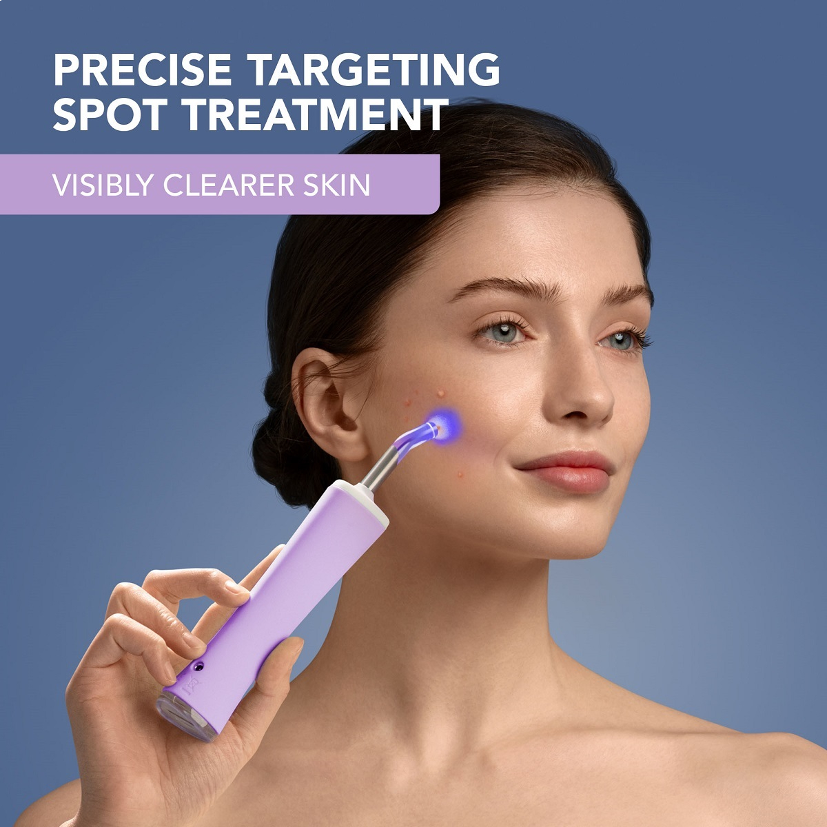 精準光導護理頭能有效聚焦藍光,精密光束靶向設計可直接對準痘痘,在確保雙眼安全的同時高效淨痘。