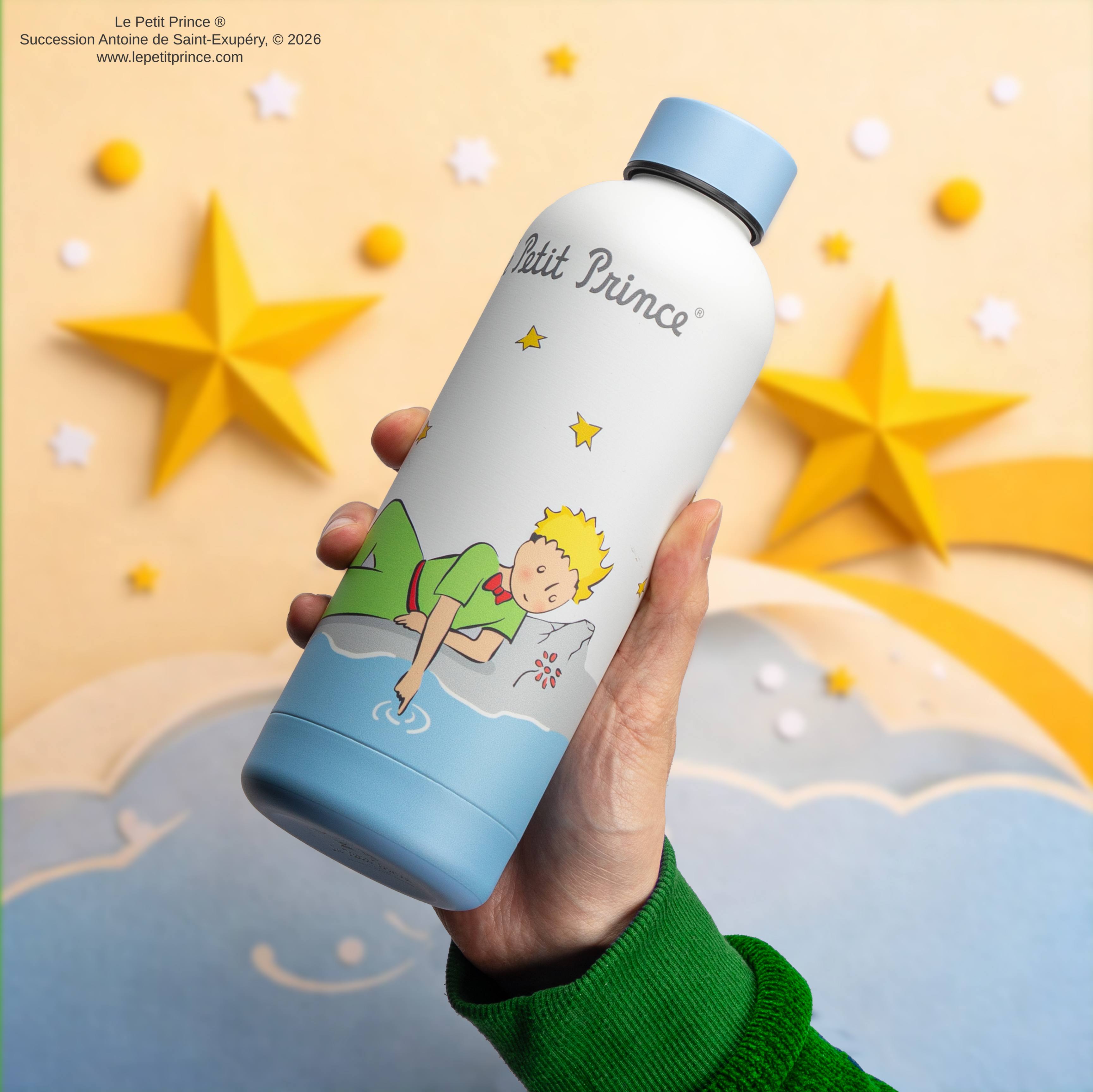 讓小王子靜靜躺在小小的星球上,四周環繞著星星,啟發每日的冒險。這款可愛水瓶以小王子為主題,為您日常生活增添一絲魔力。每次喝水都讓想像力翱翔,提醒自己,宇宙的奇蹟就在夢想的彼岸!
