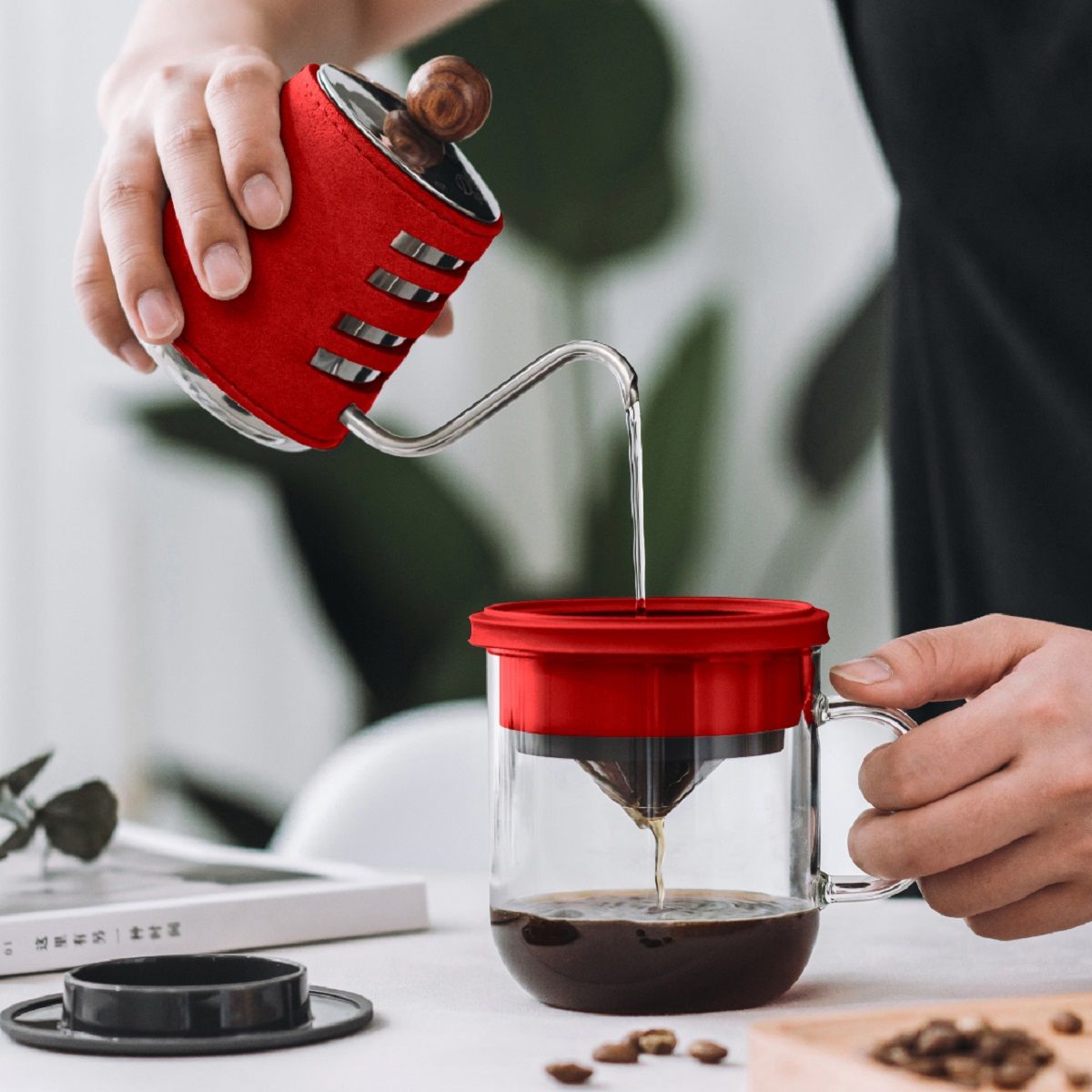 - 一體化設計的濾杯與咖啡杯, 節省空間