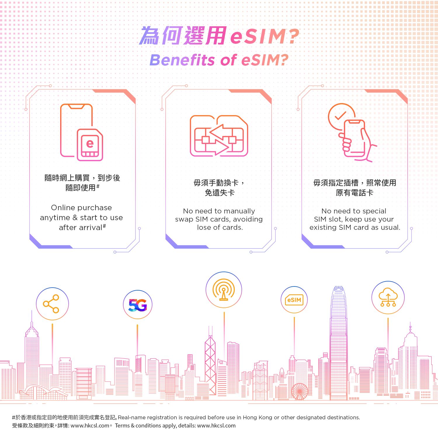 ***請確保你的流動裝置支援eSIM,如你的流動裝置不支援接收SMS,本eSIM服務暫未能服務。***