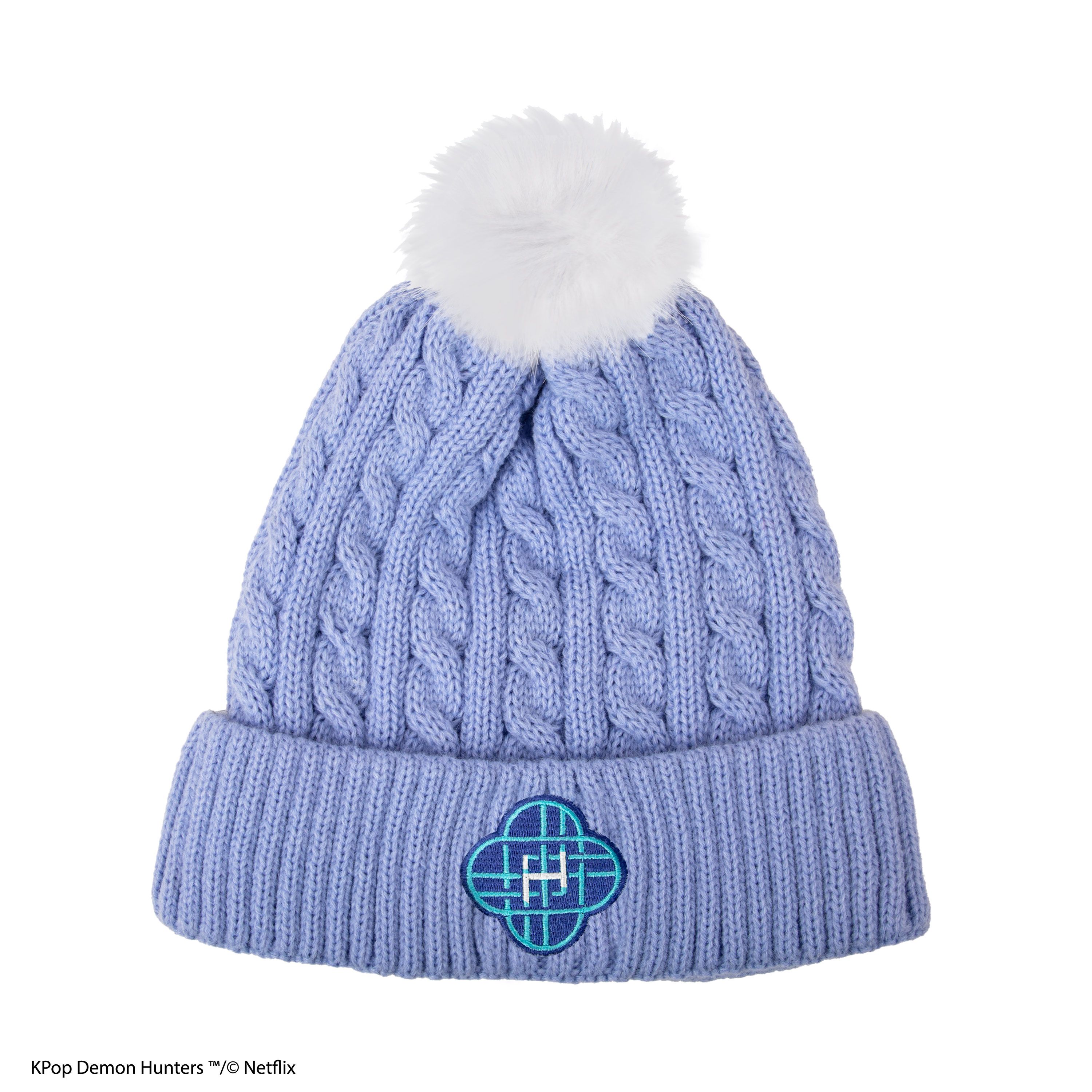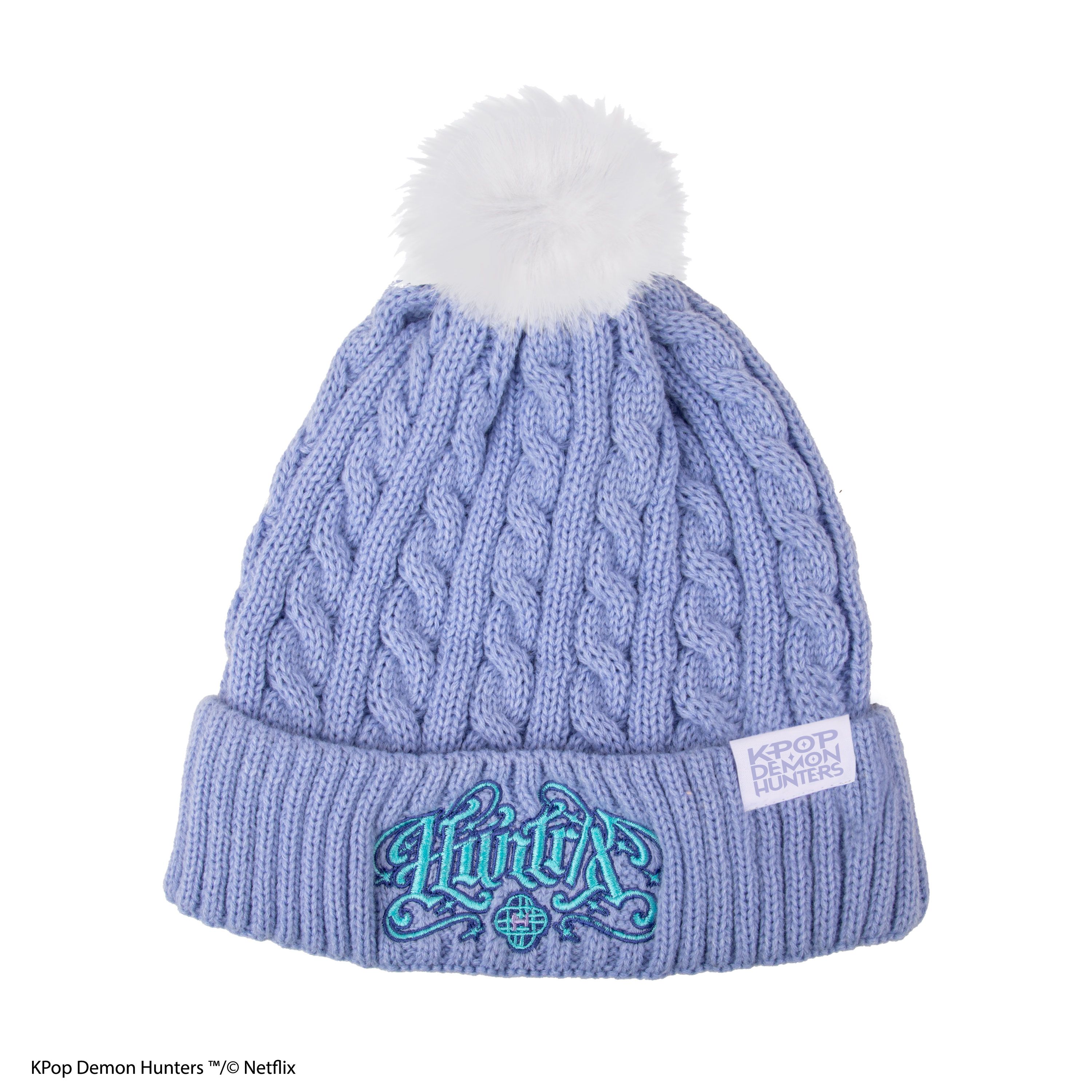 以這款《KPop Demon Hunters》HUNTR/X 令你的造型加上一點溫暖。淡紫色麻花編織設計配上柔軟毛球細節,帽沿繡有精緻 HUNTR/X 標誌,將舒適感與獵人氣場完美融合。背面低調標誌點綴細節,既保暖又時尚,是粉絲必備單品。