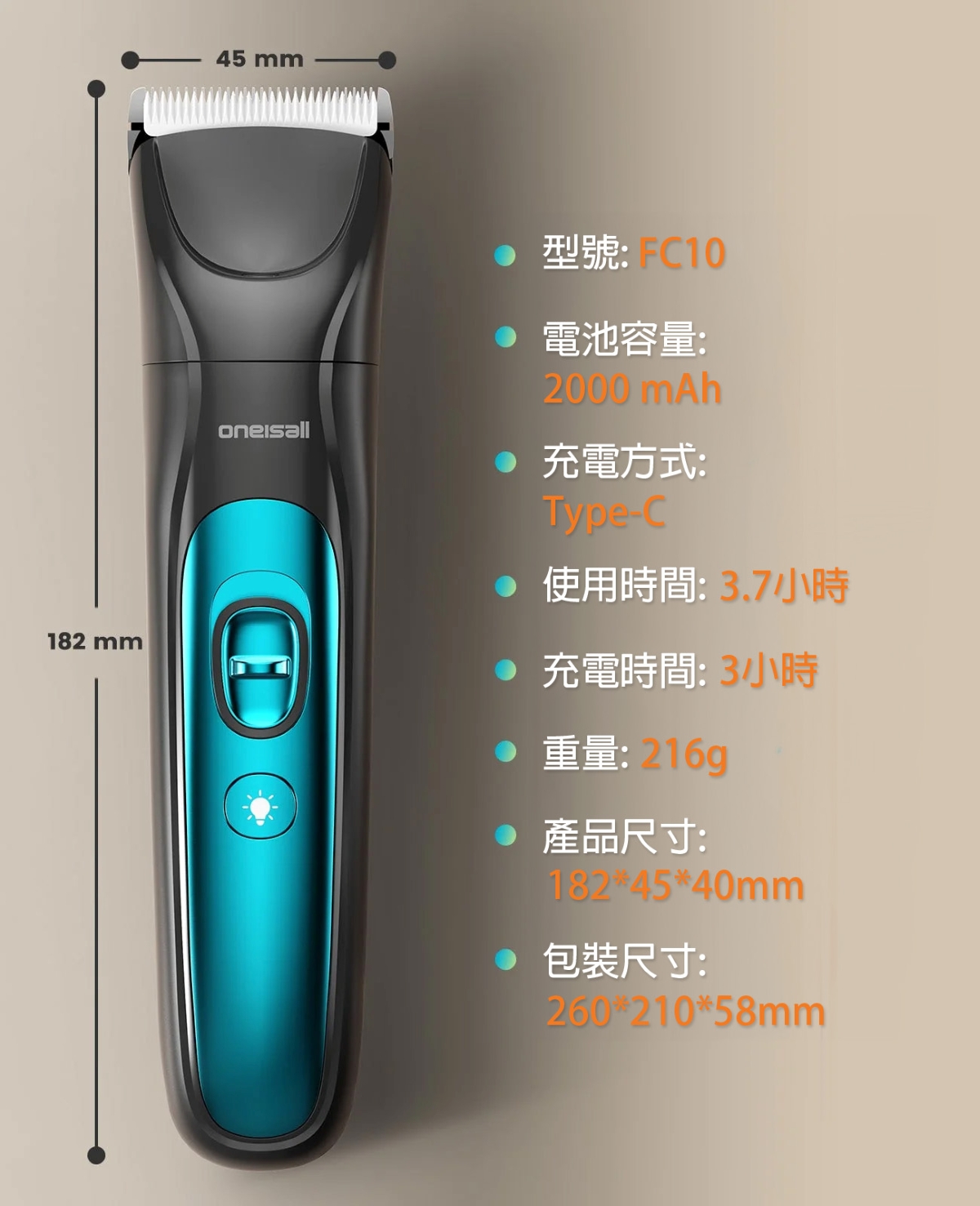 尺寸: 182 x 45 x 40 mm